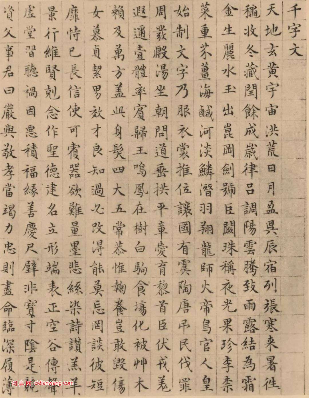 文徵明楷書卷《千字文》於1547年春書成,款署“嘉靖丁末春三月九日,徵明書”,時年文徵明78歲。