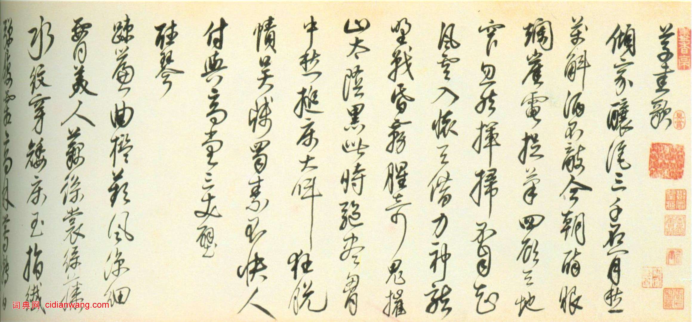 書法欣賞魏晉書法唐朝書法宋朝書法元朝書法明朝書法清朝書法近現代書法字典網>> 歷代書法>> 明朝>> 茅坤《行草陸游劍南詩卷》正文 茅坤《行草陸游劍南詩卷》作者:茅坤 書體:行草 茅坤《行草陸游劍南詩卷》黃賓虹篆書題首:鹿門遺翰 茅坤《行草陸游劍南詩卷》紙本行草書 29.1×265.7cm 上海博物館藏 2018-7-1 17:15:01 相關文章:董其昌臨《淳化閣帖》 (行書)董其昌畫像董其昌以書畫名重海內外,在董其昌身後,留存大量臨摹各家筆墨的作品,《淳...鄧文原章草《臨皇象急就章》卷 (章草)鄧文原《臨皇象急就章全卷》,此卷為紙本,章草書,縱23.3厘米,橫 398.7厘...王寵行書跋《管道升書卷》 (行書)王寵跋《管道升書卷》 資料來源:《中國歷代書畫題跋精粹》王鐸書法的三重境界題圖人物非王鐸 張大千《松下撫琴圖》悲 情 王 鐸三百年多前,從洪武門降清的那...趙之謙《隸書負舟絜宇五言聯》 (隸書)趙之謙《隸書負舟絜宇五言聯》紙本隸書 98.5×25.5cm 浙江省博物館藏 ...徐枋行書《錄常建五言詩軸》 (行書)徐枋《錄常建五言詩軸》紙本行書 136.6×62.6cm 上海博物館藏 釋文:...袁桷行書《跋王庭筠幽竹枯槎圖》 (行書)袁桷《跋王庭筠幽竹枯槎圖》,行書,紙本,日本京都藤井有鄰館藏釋文:黃華老人祖襄陽...法若真《行書七律詩軸》 (行書)法若真《行書七律詩軸》 中國國家博物館藏【資料來源】中國國家博物館網站康里巎巎行書題周朗《杜秋娘圖卷》 (行書)康里巎巎 題周朗《杜秋娘圖卷》 紙本 縱32.3cm 至元二年(1336) 北...姚鼐《行草積雨晴時七言詩軸》 (行草)姚鼐《行草積雨晴時七言詩軸》紙本行草書 108.5×27.5cm 北京市文物商...