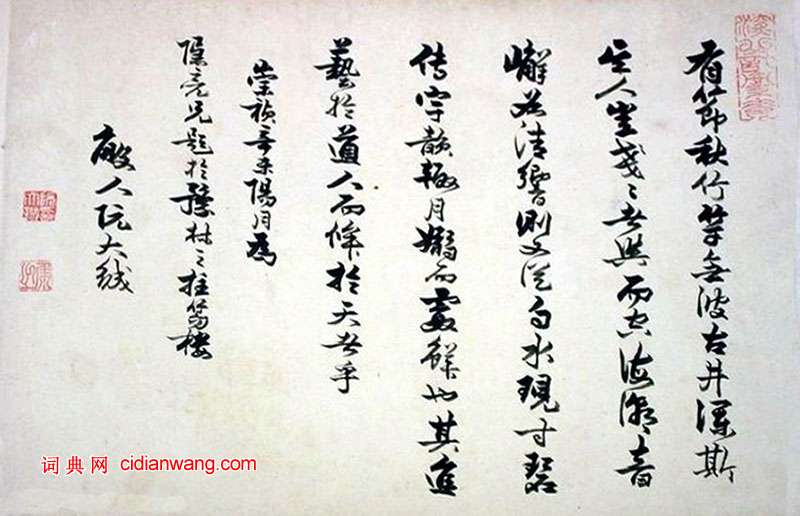 書法欣賞魏晉書法唐朝書法宋朝書法元朝書法明朝書法清朝書法近現代書法字典網>> 歷代書法>> 明朝>> 阮大鋮為友人題跋正文 阮大鋮為友人題跋作者:阮大鋮 書體:行書 阮大鋮為友人題跋,書於明崇禎辛未年(1631年),此書有張瑞圖意。 釋文:有節秋竹竿,無波古井瀾,斯其人豈戔戔者與而空海潮音嶰密清響則又從白水現寸碧傳宇韻... 落款:崇禎辛未?月為?亮兄題於豫林之拄笏樓2018-7-7 8:44:40 阮大鋮的相關書法作品:阮大鋮為友人題跋 阮大鋮《行書五言律詩軸》 相關文章:東晉楷書《謝鯤墓誌》 (楷書)《謝鯤墓誌》,1964年9月10日,出土於南京中華門外戚家山殘墓中。橫腰被推土機...沈曾植《行書節臨李思訓碑扇面》 (行書)沈曾植《行書節臨李思訓碑扇面》紙本行書 19.5×52cm 浙江省博物館藏 釋...趙孟頫小楷《無逸》 (小楷)趙孟頫小楷《無逸》,現藏故宮博物院。《無逸》沒有年款,原帖與(1301)蕭 (奭...王素行書《才徳帖》 (行書)王素《才徳帖》行書 紙本 縱29cm×29.7cm 台北故宮博物院藏釋文: 素...朱彝尊《隸書老圃醉鄉七言聯》 (隸書)朱彝尊《隸書老圃醉鄉七言聯》紙本隸書 124×29cm×2 瀋陽故宮博物院藏...唐伯虎行書《落花詩冊》 (行書)沈周因喪子而撰寫落花七律十首,此為唐寅和之《落花詩冊》共30首。他看到地上落英滿...全國第一屆書法篆刻展覽-篆刻作品1980年5月,全國第一屆書法篆刻展覽(國展)在瀋陽展出,現與大家分享由人民美術...吳熙載隸書《求珠倚杵七言聯》 (隸書)吳熙載《隸書“求珠倚杵”七言聯》紙本隸書 131.6×29.4cm×2 北京...何紹基行書《小池隙地七言聯》 (行書)何紹基《“小池隙地”七言聯》蠟箋行書 123×30cm×2 常州博物館藏釋文...米芾《值雨帖》 (行書)【釋文】芾頓首。早拜見。值雨。 草草。不知軸議何 者為如法。可換更告 批及。今且...
