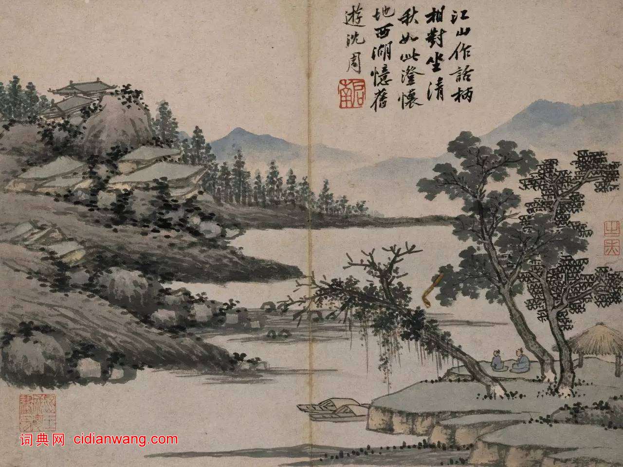 款題:“江山作話柄,相對坐清秋;如此澄懷地,西湖憶舊遊。”沈周鈐朱文印一方,上刻“啟南”二字。