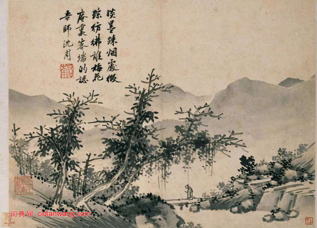 自題:淡墨疏煙處,微蹤仿佛誰。梅花庵里客,端的認吾師。沈周。