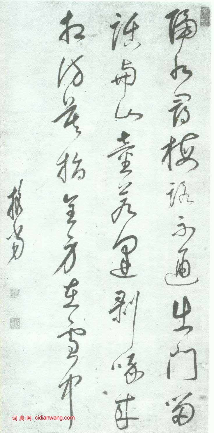 書法欣賞魏晉書法唐朝書法宋朝書法元朝書法明朝書法清朝書法近現代書法字典網>> 歷代書法>> 明朝>> 釋擔當草書《七言詩軸》正文 釋擔當草書《七言詩軸》作者:釋擔當 書體:草書 釋擔當《七言詩軸》,草書,圖片來自《中國書法》2004第12期 釋文:隔水尋梅路不通,出門留話與山童。若逢剝啄來相訪,莫指全身在雪中 擔當 2018-7-13 16:17:59 釋擔當的相關書法作品:釋擔當《古雪古僧》橫幅 釋擔當《行草書四言詩軸》 釋擔當·行草書四言詩軸 釋擔當草書《贈大鑒草書立軸》 釋擔當·竹詩草書軸 釋擔當·草書五絕詩軸 釋擔當行書《再作不可橫額》 釋擔當《草書詩冊》 釋擔當行書《五言詩軸》 相關文章:沙孟海《臨蘇軾寒食帖冊》 (行書)沙孟海《臨蘇軾寒食帖冊》 30.5×33.5cm×3 1973年 浙江省博物...倪元璐《行草書體秋之一五言詩軸》 (行草)倪元璐《行草書體秋之一五言詩軸》紙本行草書 182.6×46.1cm 廣州藝術...陳淳行草《漫書近作五絕扇面》 (行草)陳淳《漫書近作五絕扇面》 行草書 16.3×46.8cm 台北故宮博物院藏釋文...劉昉·跋唐人《誥命殘卷》 (行書)【釋文】晉范室子續其家世,自虞、夏、商、周,迄晉之主盟,保姓受名,以為不朽。而魯...梁啓超《行書尺牘》 (行書)梁啓超《行書尺牘》, 刊於《中國書法》1993年第5期魯迅行書《贈臺靜農報載患腦炎戲作詩頁》 (行書)魯迅《贈臺靜農報載患腦炎戲作詩頁》 24.2×16.4cm 1934年 北京魯...董其昌行草《羅漢贊等書卷》 (行草)董其昌《行草書羅漢贊等書卷》,又名《試筆帖》,紙本,縱31.1厘米,橫631.3...祁豸佳行書《五言詩軸》 (行書)祁豸佳《行書五言詩軸》紙本行書 72.9×21.3cm 安徽省博物館藏 釋文:...張即之行書《棐茗帖》 (行書)張即之《棐茗帖》紙本行書 26.8×23.6cm 釋文:棐茗皆山中珍品拜貺感銘...趙之謙《楷書猛志奇齡五言聯》 (楷書)趙之謙《楷書猛志奇齡五言聯》紙本楷書 189×56.5cm×2 北京故宮博物...