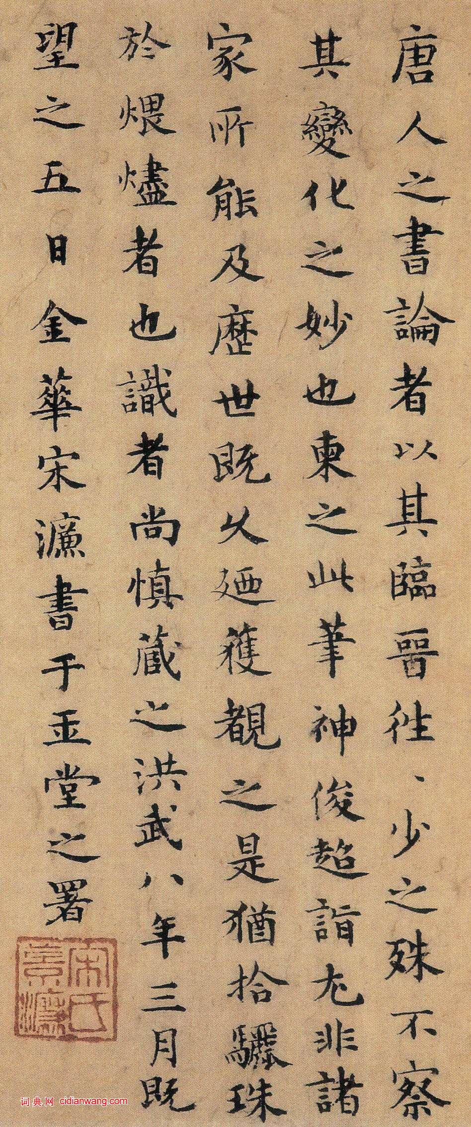 宋濂《題陸柬之文賦》紙本楷書 縱25.1cm 洪武八年(公元1375年) 台北故宮博物院藏