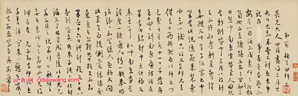 這是王寵致兄長王守的一系列家書中的一通,所述歷歷都是家中瑣事,如何親自種田,如何分配收入、計算支出,如何籌措銀錢償還債務,等等等等。因是家書,不僅言辭直白,而且書法也輕鬆隨意。