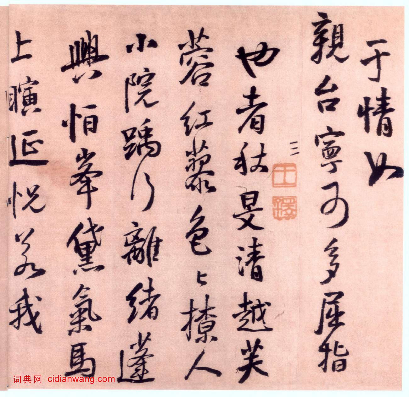 資源下載魏晉書法唐朝書法宋朝書法元朝書法明朝書法清朝書法近現代書法字典網>> 歷代書法>> 明朝>> 王鐸行書《報寇葵衷書》(5)正文 王鐸行書《報寇葵衷書》(5)作者:王鐸 書體:行書 首 頁 上一頁 1 2 3 4 5 6 7 下一頁 尾 頁 全文2018-9-29 9:42:17 王鐸的相關書法作品:王鐸《五律夜高郵作書詩軸》 王鐸草書《為葆光張老親翁書》詩卷 王鐸行書《報寇葵衷書》 王鐸行書《偕友登中嶽天中閣作扇面》 王鐸《自作太平庵五律詩》軸 王鐸《行書五言詩立軸》 王鐸草書《臨王曇首昨服散帖》 王鐸草書《臨柳公權辱問帖軸》 王鐸《行書五言律詩立軸》 相關文章:雍正的日常朱批,朕就是這樣漢子! (行書)你看過雍正帝的奏摺朱批嗎,“朕就是這樣的漢子” 被雍正的日常萌到了,雍正的日常朱...秦檜《深心帖》 (行草)秦檜《深心帖》出自《楞嚴經》第三卷,在該卷中,佛祖釋迦摩尼的十大弟子之一,阿難,...趙孟頫·續千字文卷 (行書)趙孟頫《續千字文卷》,24.3×153.3cm。附:《續千字文》是宋人侍其瑋模...西漢隸書《陽泉使者舍熏爐銘》 (隸書)陽泉使者舍熏爐銘,銘文13行凡47字,西漢。是器傳為西漢時期銅器,無詳細考據資料...倪瓚行楷《淡室詩》軸 (行楷)倪瓚《淡室詩》軸,紙本,行楷書,縱64cm,橫27cm。北京故宮博物院藏釋文:欲...康有為《行書樹立忠義五言聯》 (行書)康有為《行書“樹立忠義”五言聯》 紙本行書 130cm×31.5cm×2 ...文徵明《行書致妻札》 (行書)文徵明《行書致妻札》 右25.5×12.3cm 左25.5×10.3cm 上...祝允明小楷《和陶飲酒詩》 (小楷)祝允明《和陶飲酒詩》冊,每頁17.3×10.3厘米。台北故宮博物院藏。詩作於四...查士標《行書西泠橋七絕詩軸》 (行書)查士標《行書西泠橋七絕詩軸》綾本行書 181×50cm 南京市文物商店藏釋文:...啟功行書《自作詩九首》 (行書)啟功老人的書法,之所以可親而讓人喜歡,還有一個原因是老人的文藝素養高,不僅能寫字...
