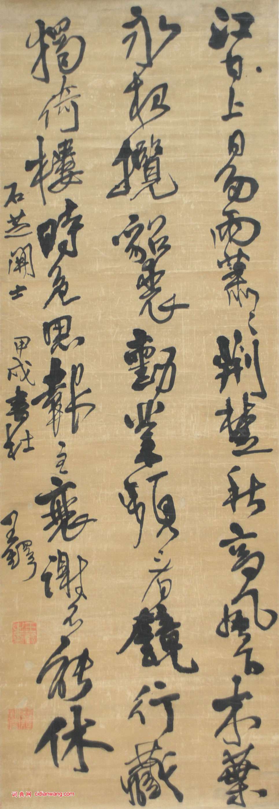王鐸《行書五言杜詩軸》,書於明崇禎七年(甲戌,1634年), 武漢博物館藏