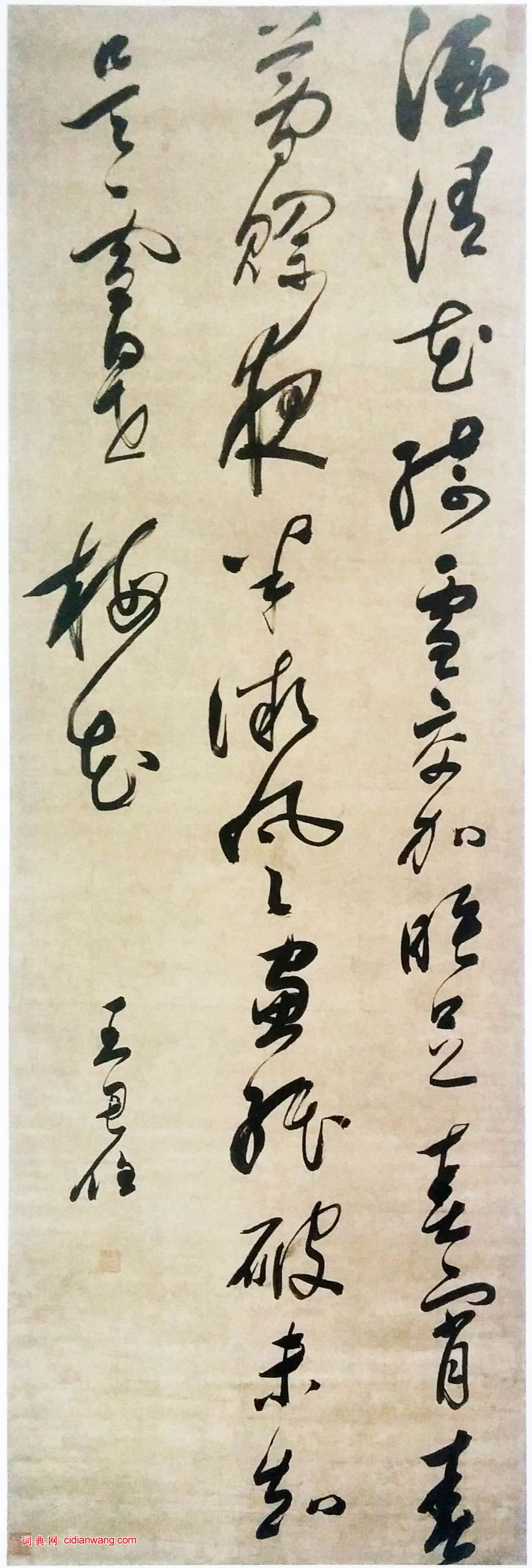 王思任《草書七絕詩軸》綾本,尺寸152.5×49.5cm,福建博物院藏。