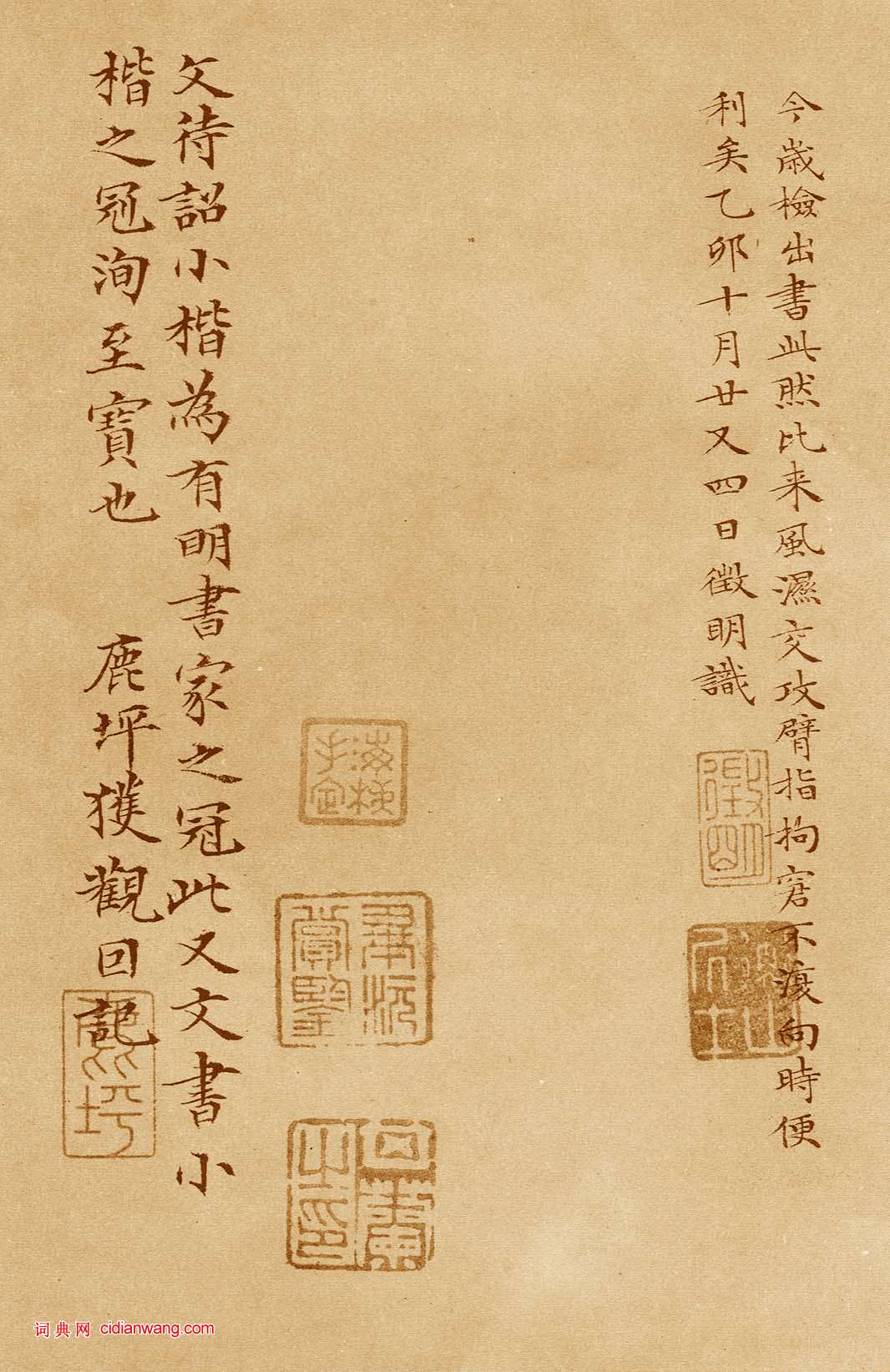“文待詔小楷為有明書家之冠,此又文書小楷之冠,洵至寶也。”