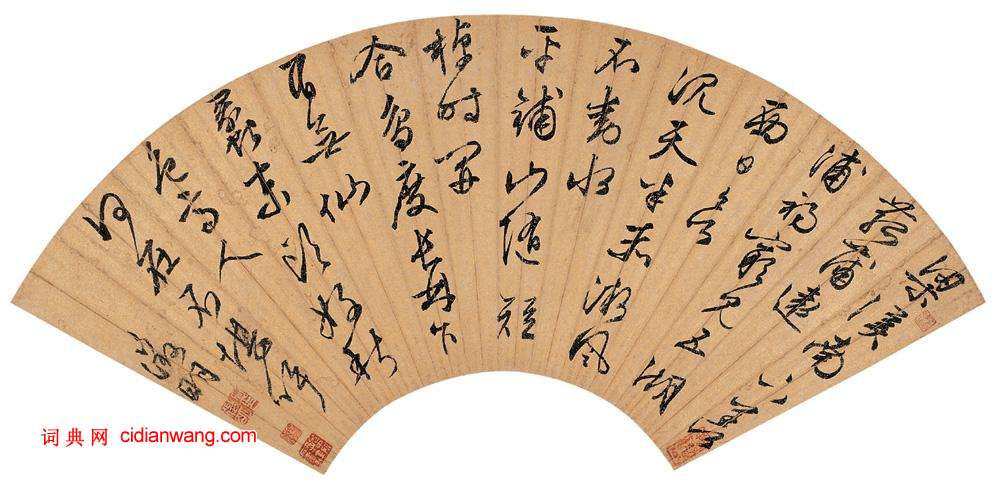 文徵明《七言行書扇面》, 金箋, 縱19.5厘米,橫54厘米。
