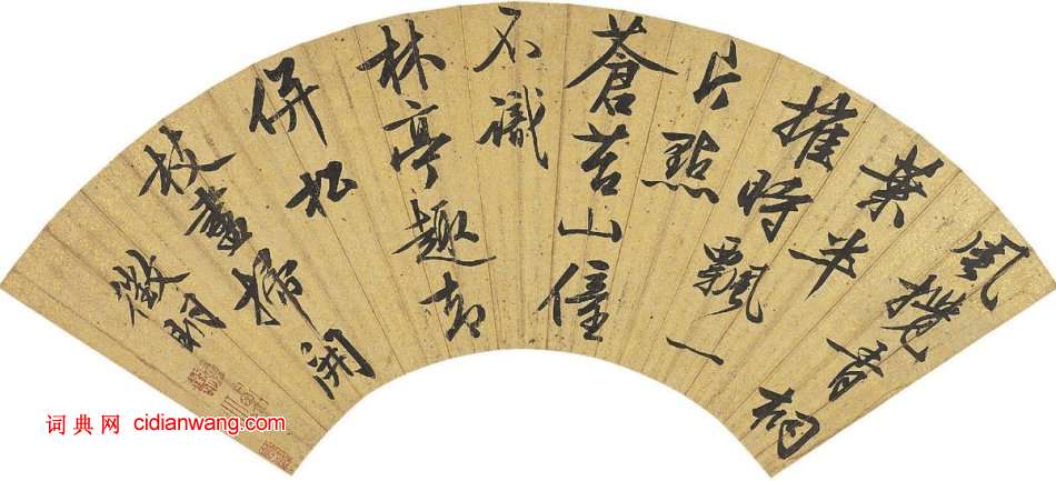 文徵明行書七言絕句扇面,泥金紙本,尺寸:17×52cm