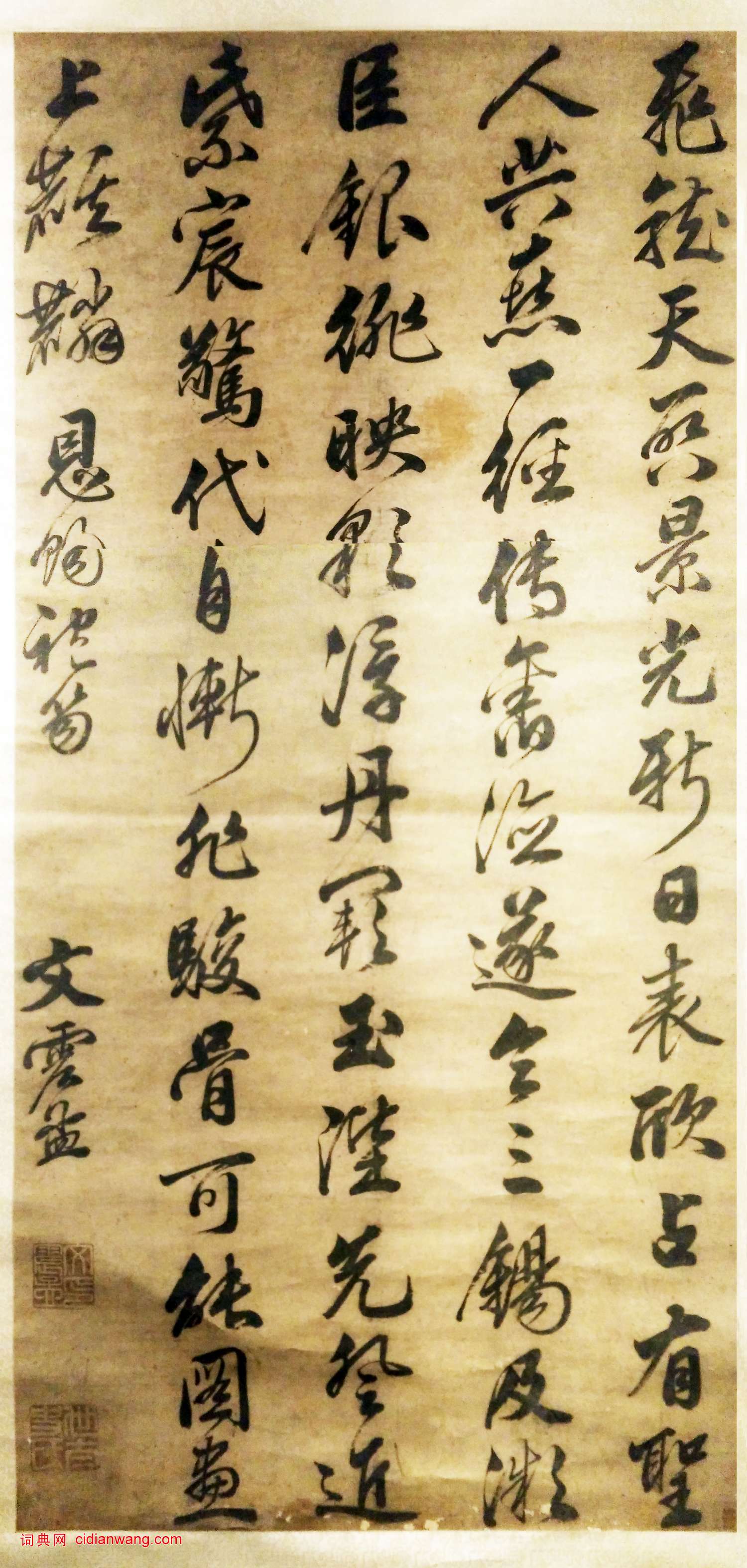 資源下載魏晉書法唐朝書法宋朝書法元朝書法明朝書法清朝書法近現代書法字典網>> 歷代書法>> 明朝>> 文震孟行書《恩賜袍笏軸》正文 文震孟行書《恩賜袍笏軸》作者:文震孟 書體:行書 文震孟《恩賜袍笏軸》,紙本,行書,尺寸:133.9×63.9cm, 南京博物館藏。 【資料來源】南京博物院藏明代吳門書法特展《江左流韻》 2018-11-25 10:14:33 文震孟的相關書法作品:文震孟行書《西園公宴詩軸》 文震孟行草《致趙宧光札》 文震孟《行書初入侍班詩軸》 文震孟行書《恩賜袍笏軸》 文震孟行書《王維詩句軸》 相關文章:懷素《苦筍帖》 (草書)【釋文】苦筍及茗異常佳,乃可逕來。懷素上。懷素《苦筍帖》卷,草書,絹本,無年款。...吳叡篆書《千字文》 (篆書)此篆書千字文出自吳叡《篆隸書離騷千字文合卷》,卷後有張雨題跋, 上海博物館藏...王直行書《與南雲書帖》 (行書)王直《與南雲書帖》, 行書,選自《三希堂法帖》釋文:前者嘗面請作圖書,蒙金諾。然...康有為《行書茂竹晴雲五言聯》 (行書)康有為《行書茂竹晴雲五言聯》紙本行書, 尺寸126×32.5cm×2, 浙江...鄧石如篆書《白氏草堂記六屏》 (篆書)鄧石如篆書白氏草堂記六屏,此屏高近二百厘米,現藏於日本。鄧石如篆、隸、楷、行、草...吳說行書《垂喻帖》尺牘 (行書)吳說《垂喻帖》尺牘 冊 紙 行書 30.2 x 44.6cm 台北故宮博物院藏 ...王鏊《自書五律詩》軸 (行書)王鏊《自書五律詩》軸,紙本,行書, 132.8×69.5cm 北京故宮博物院藏...吳琚·伏自帖(觀使開府帖) (行書)【釋文】琚伏自廿二日具稟報之後,深慮旨揮未到,勢不容留。遂將牌印牒以次官權管,姑...鮮于樞行書《王安石雜詩卷》 (行書)鮮于樞《王安石雜詩卷》縱50厘米 橫1025厘米 遼寧博物館藏鮮于樞《王安石雜詩...八大山人·臨興福寺半截碑冊 (行楷)此冊《臨興福寺半截碑冊》為張大千先生舊藏。是八大山人書法中的重要作品之一。《興福...