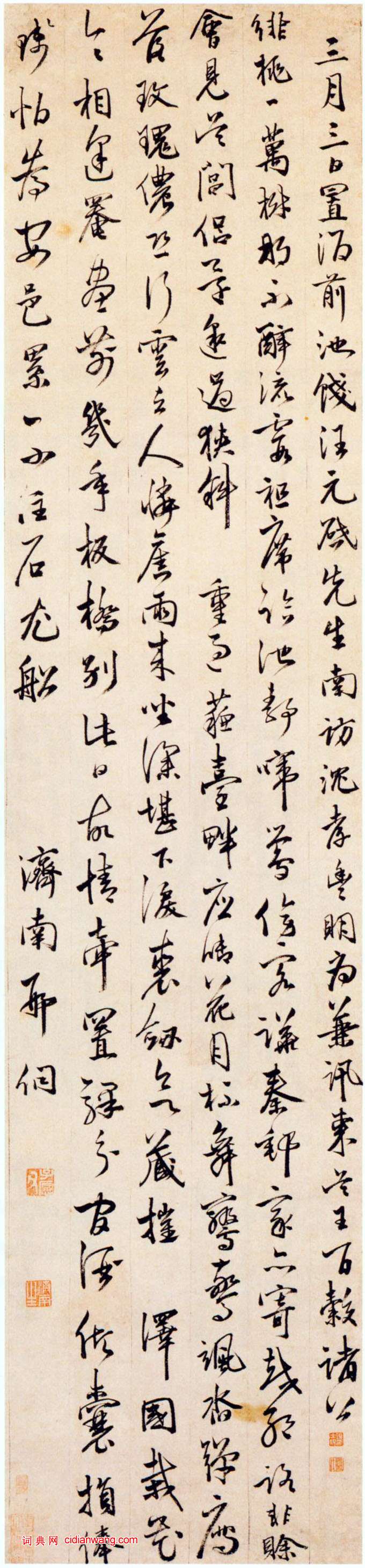 邢侗《餞汪元啟詩》軸 紙本 行書 142×33.2厘米 北京故宮博物院藏
