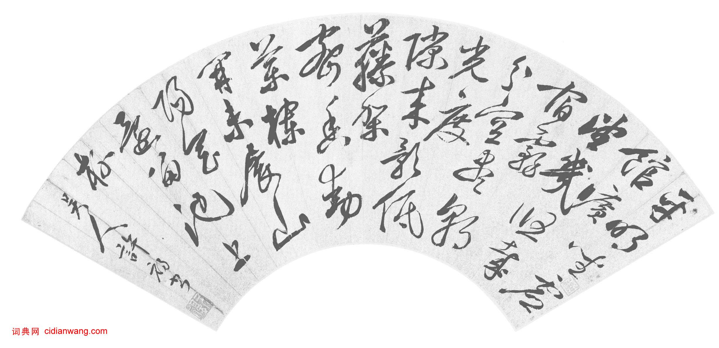 許初《草書五律詩扇》,金箋,草書, 廣州藝術博物院藏。
