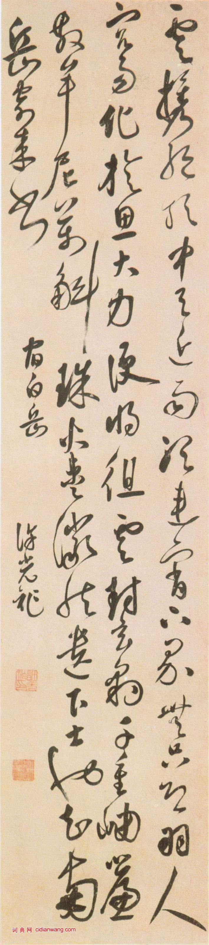 許光祚生卒不詳,字靈長,浙江仁和(今浙江溫嶺縣)人。約明神宗萬曆末前在世。萬曆初,舉於鄉,知太平縣。能詩,格調平易,著有《許靈長集》行世。藝術行跡被載於二十餘種典籍中。善書,真、行、草皆能。《杭州志》上說:“光祚與湯煥(字堯文,號鄰初。隆慶舉人,為江陰教諭。後征為翰林待詔,轉郡丞。作品有《游西山詩冊墨跡》等傳世。)同郡,得其書法,時人號曰‘湯、許’。”