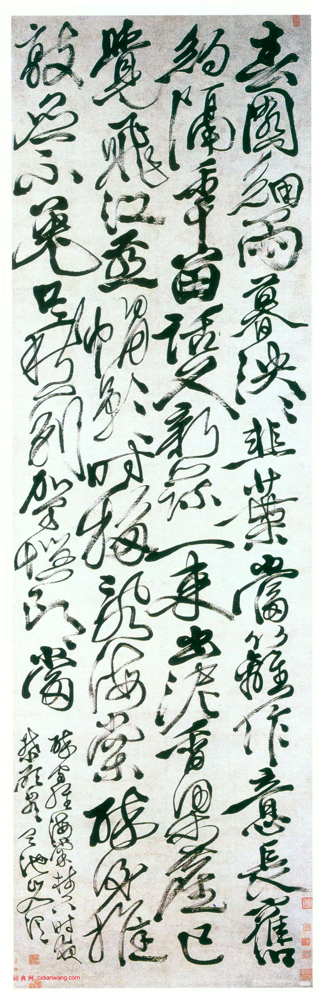 徐渭《草書春園細雨七律詩軸》 ,紙本,行草書,尺寸:209.8×64.3cm, 北京故宮博物院藏。