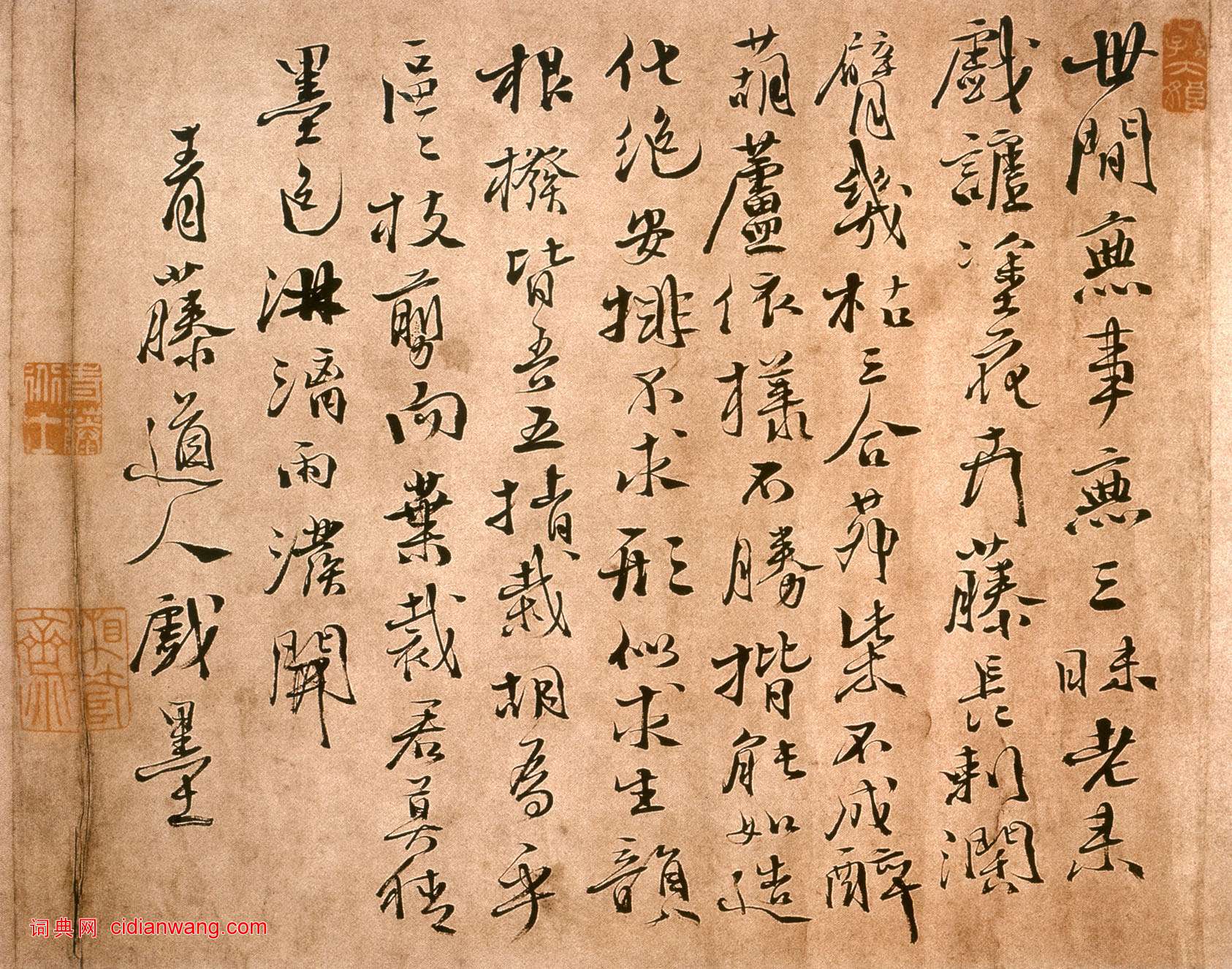 徐渭《花卉人物圖卷題詩》,行書,尺寸:縱19厘米,橫22厘米, 中國國家博物館藏。