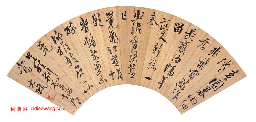 徐渭《行書七言詩扇面》,水墨金箋,見於中國嘉德國際拍賣有限公司2005春季拍賣會中國古代書畫專場。