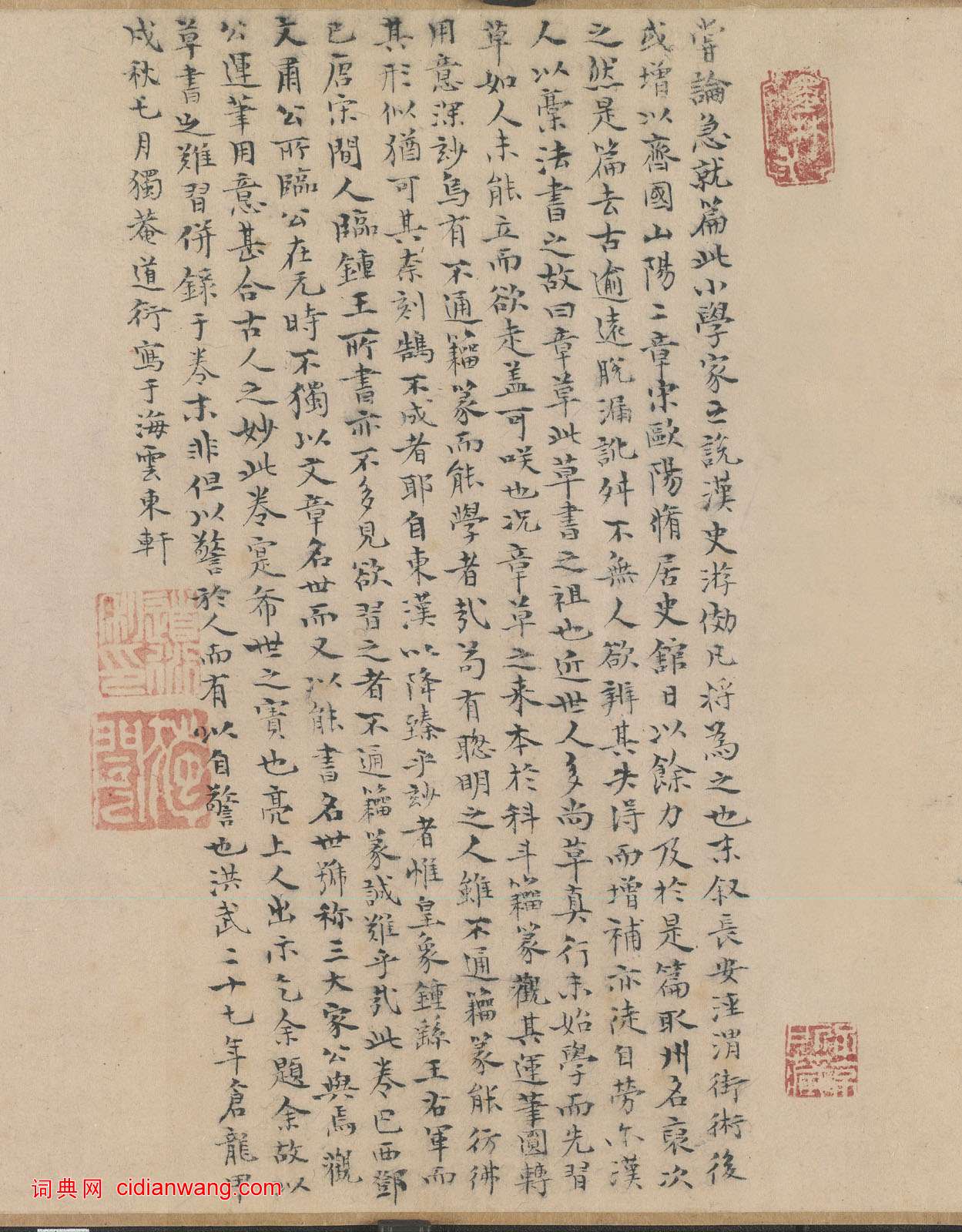 姚廣孝《跋鄧文原急就章》,楷書,書於明洪武二十七年(1394年),尺寸:縱23.3cm, 北京故宮博物院藏 。