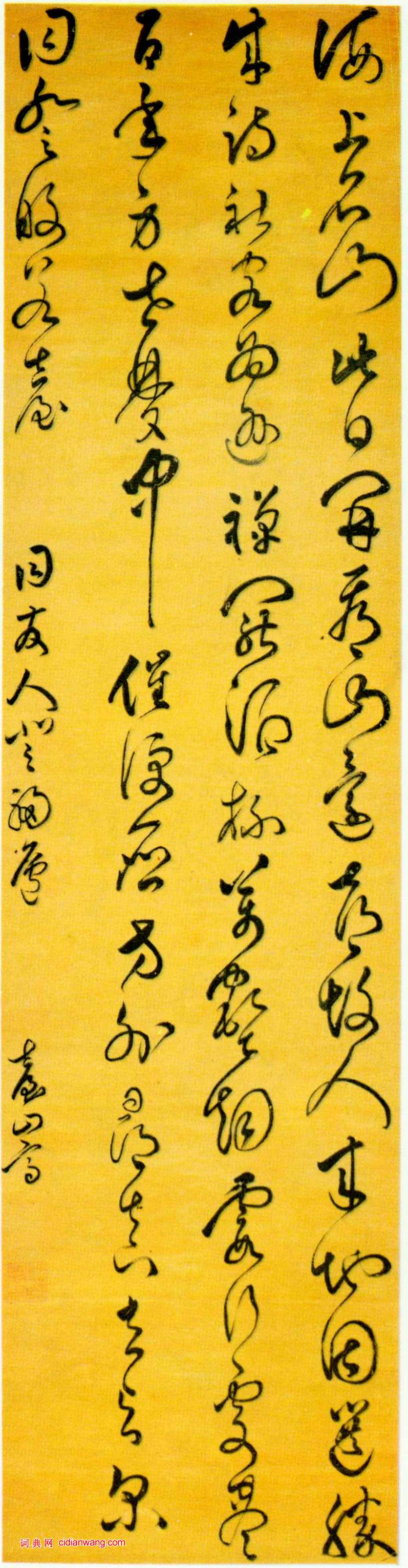葉向高《同友人登福廬詩軸》,綾本,草書,尺寸:199.3×51cm, 北京故宮博物院藏。