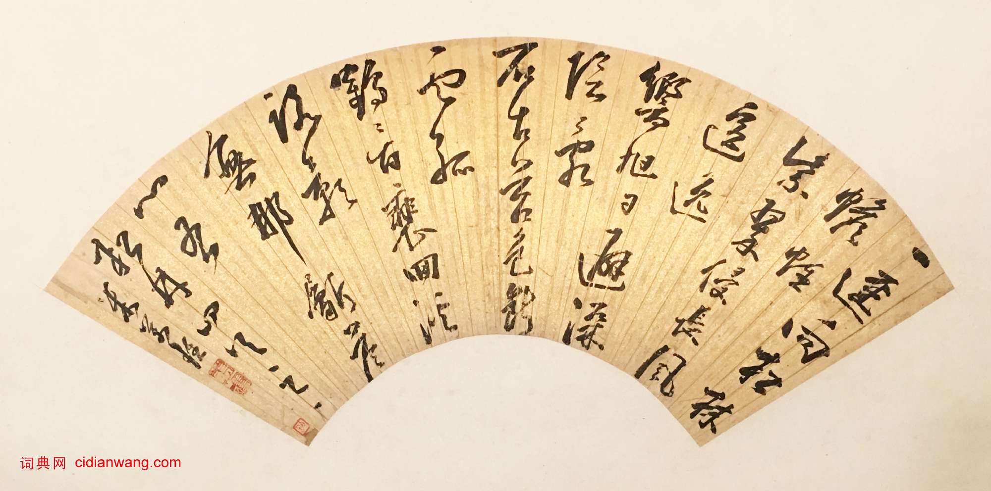 米萬鍾《行書松林四首之一扇頁》,紙本,金箋,行書,尺寸: 16.5×50.6cm, 南京博物院藏 。