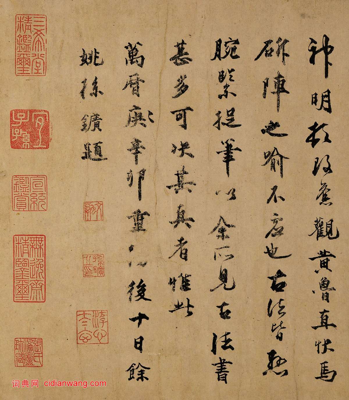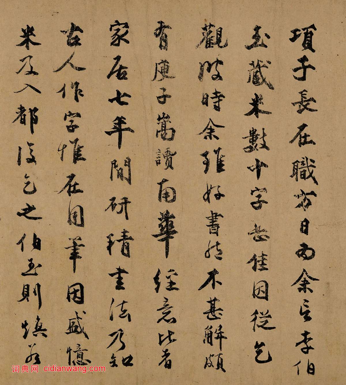 項子長在職方日,為余言李伯玉藏米數十字甚佳,因從乞觀,彼時余雖好書,然不甚解,頗有庾子嵩讀《南華經》意。比者家居七年間,研精書法,乃知古人作字,惟在用筆,因盛憶米,及入都,復乞之伯玉,則煥若神明,頓改舊觀。黃魯直快馬斫陣之喻,不虛也!古法皆懸腕,緊捉筆。以余所見古法書甚多,可決其真者惟此。