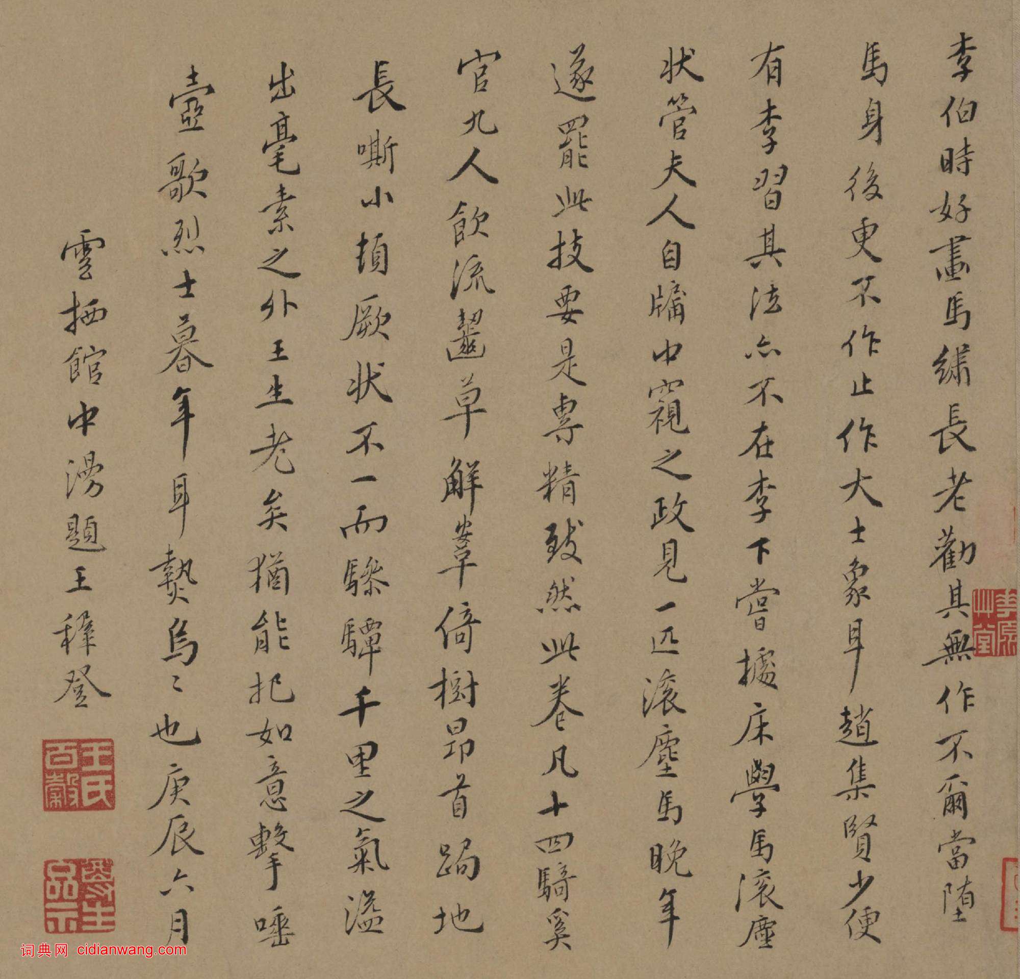 王穉登行書《跋趙孟頫浴馬圖卷》
