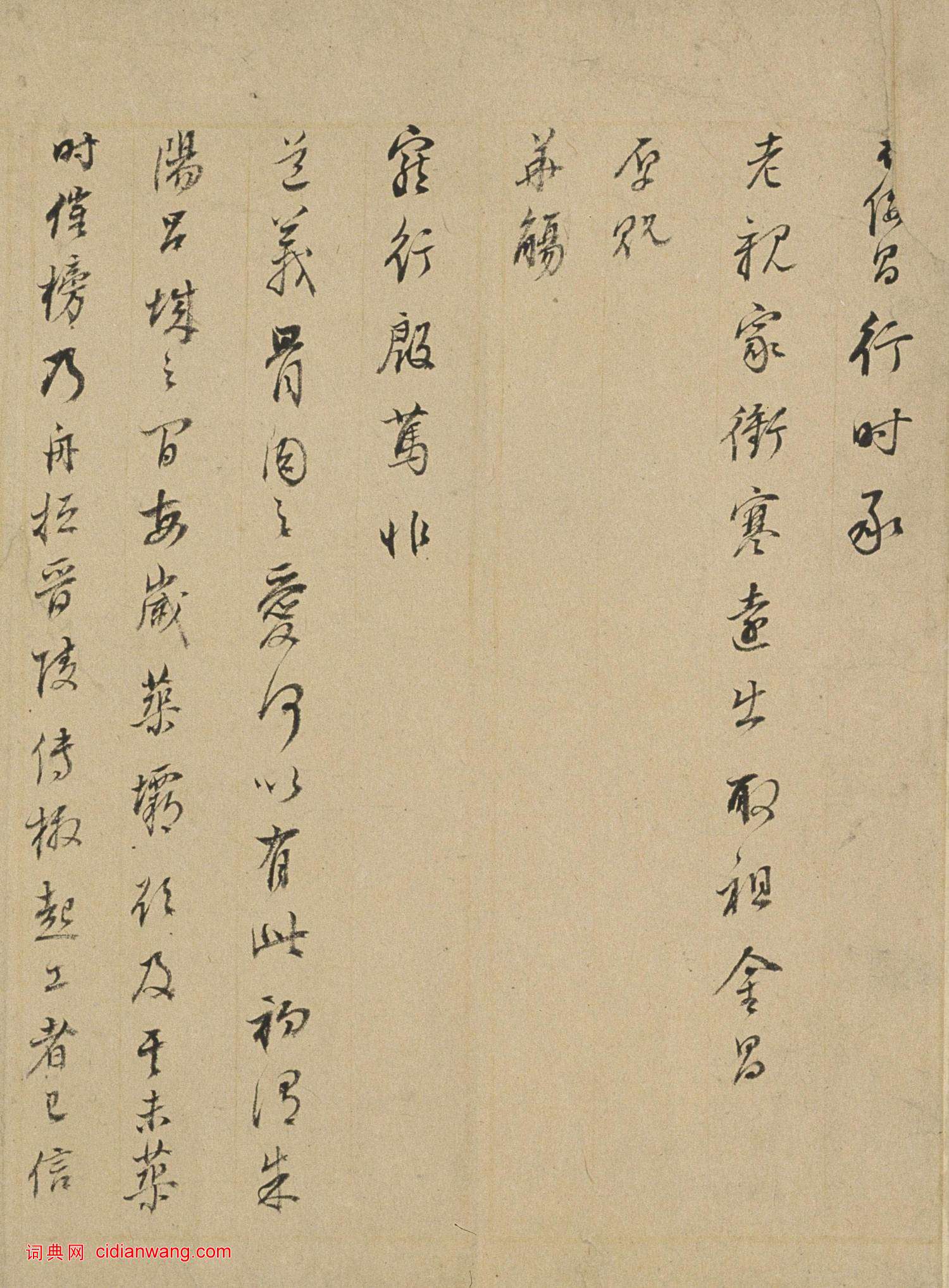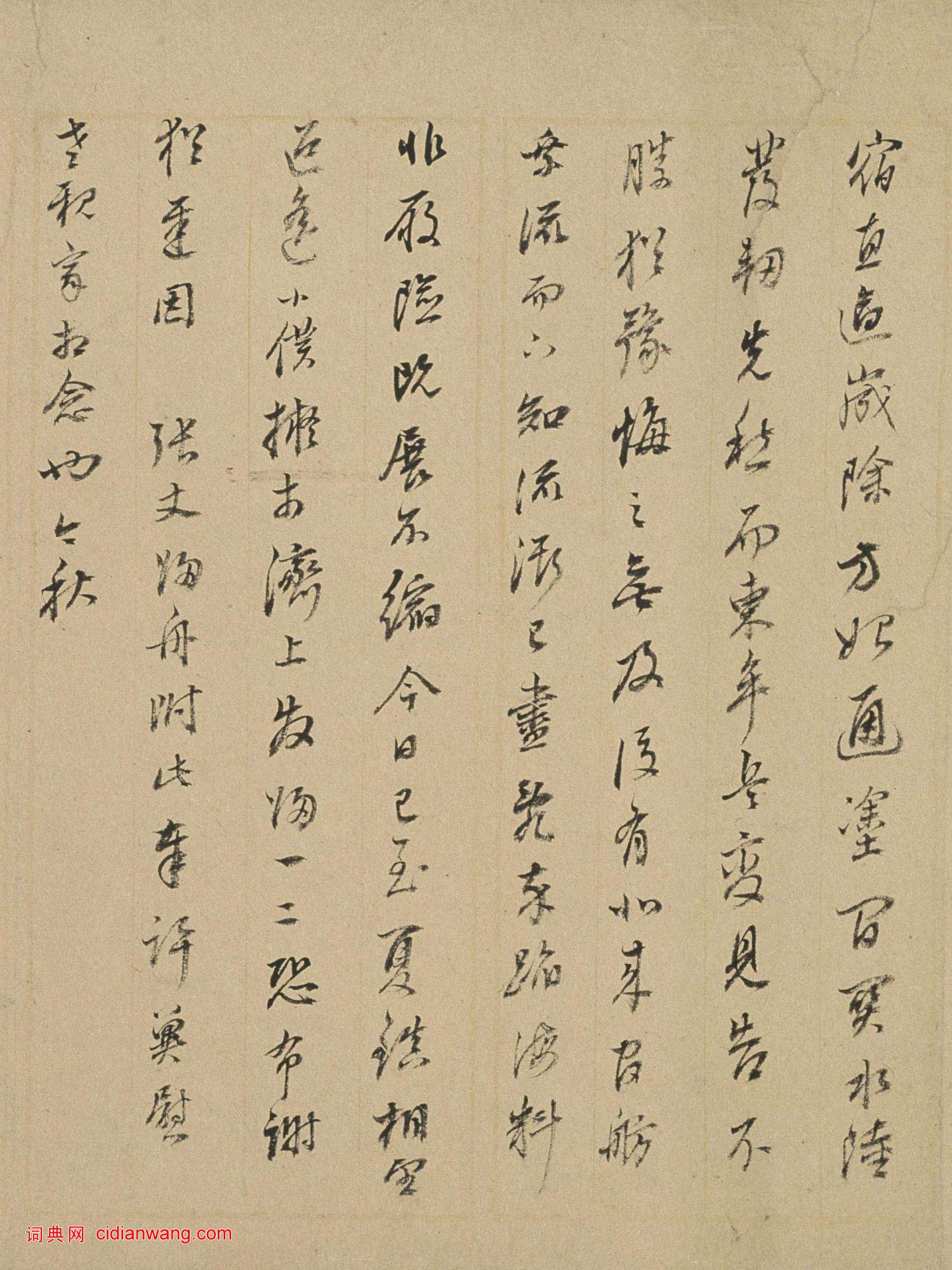 資源下載魏晉書法唐朝書法宋朝書法元朝書法明朝書法清朝書法近現代書法字典網>> 歷代書法>> 明朝>> 董其昌《行書信札卷》(2)正文 董其昌《行書信札卷》(2)作者:董其昌 書體:行書 首 頁 上一頁 1 2 3 4 5 下一頁 尾 頁 全文2019-5-16 12:43:44 董其昌的相關書法作品:董其昌·草書張籍七言詩 董其昌行書《為丁雲鵬賀壽詩》 董其昌行書《唐人九日應制二首扇面》 董其昌《蜀素帖後跋》 董其昌行書《臨蘇軾天際烏雲帖》 董其昌行書《蘇軾醉翁操》冊 董其昌楷書《金剛經》 董其昌行書《五言詩扇面》 董其昌行書《白羽扇賦》卷 相關文章:翁同龢行書《垂竿翥鶴五言聯》 (行書)翁同龢《行書垂竿翥鶴五言聯》紙本行書 150×39cm×2 常州博物館藏釋文...王思任《草書七絕詩軸》 (草書)王思任《草書七絕詩軸》綾本,尺寸152.5×49.5cm,福建博物院藏。【資料...鍾繇《宣示表》 (楷書)《宣示表》故宮博物院藏,梁武帝蕭衍譽道“勢巧形密,勝於自運”。筆法質樸渾厚,雍容...陳基《懷存齋詩帖》 (行書)【釋文】九日有懷存齋隱君一首,聊發一笑。並呈雲林先生,植頓首上。冉冉秋復冬,淒淒...歐陽詢小楷《九歌》 (小楷)此宋石刻本不知何時埋入土中。清嘉慶二十三年河北豐潤縣重出。一面刻《九歌》小楷,一...張弼草書《蝶戀花詞軸》 (草書)張弼《蝶戀花詞軸》紙本草書 151×61cm 首都博物館藏釋文: 鍾送雞黃昏報...趙孟頫行書《論虞世南書法》,《論枕臥帖》 (行書)趙孟頫行書《論虞世南書法》即論《枕臥帖》,28.3×44.6cm,現存台北故宮...北魏《元萇墓誌》 (楷書)洛陽邙山地區為北魏皇室的墓葬地,曾先後出土過大批墓誌。這些墓誌的最大特點便是書體...漢代篆書《張掖都尉啟信》 (篆書)“張掖都尉啟信”為一件21厘米×16厘米見方的紅色織物,上方正中綴系,正面墨筆...敦煌寫經殘紙書法欣賞敦煌寫經是我國古文獻中的瑰寶,自1900年敦煌寫經卷在敦煌藏經洞被發現後,密藏多...