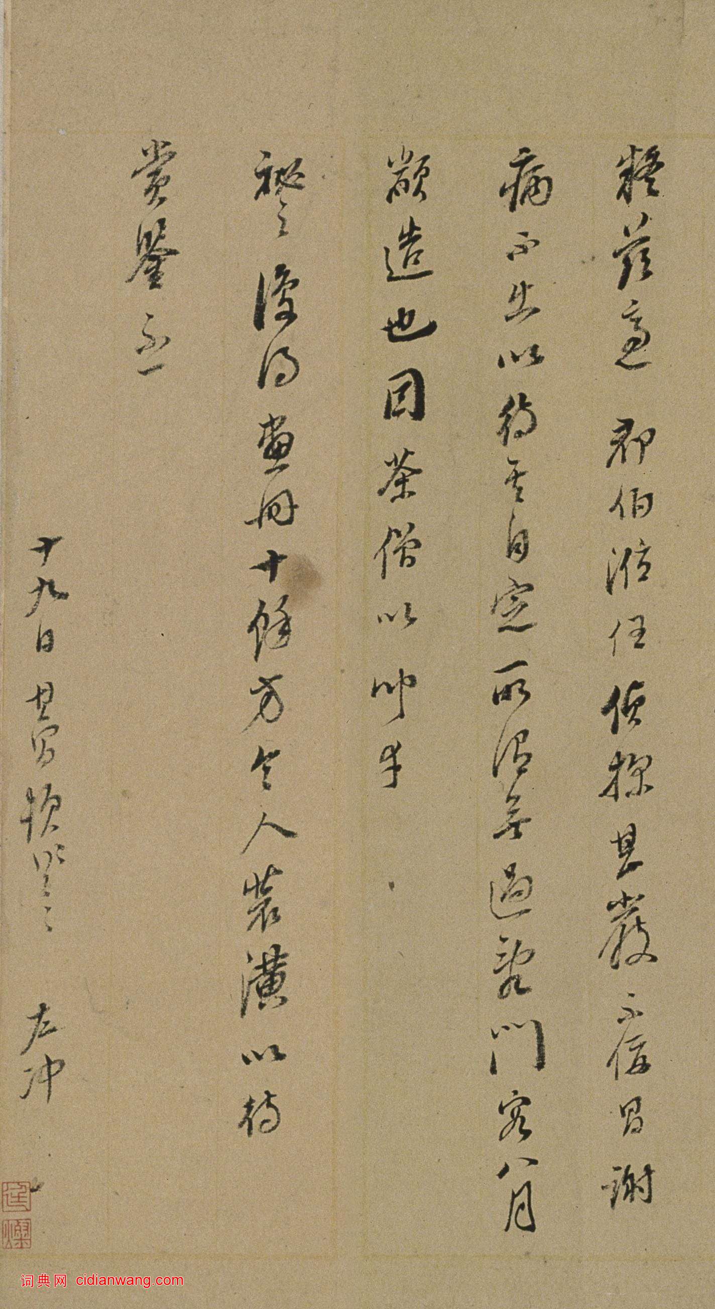 資源下載魏晉書法唐朝書法宋朝書法元朝書法明朝書法清朝書法近現代書法字典網>> 歷代書法>> 明朝>> 董其昌《行書信札卷》(4)正文 董其昌《行書信札卷》(4)作者:董其昌 書體:行書 首 頁 上一頁 1 2 3 4 5 下一頁 尾 頁 全文2019-5-16 12:43:44 董其昌的相關書法作品:董其昌行書《仿米書詩軸》 董其昌行書跋陸機《平復帖》 董其昌楷書《五言古詩句》 董其昌臨米芾《方圓庵記》 董其昌臨《淳化閣帖》 董其昌行書《三思疏》 董其昌《蜀素帖後跋》 董其昌·臨冠軍帖 董其昌·梁武帝書評卷 相關文章:王鐸草書《臨閣帖軸》 (草書)王鐸 《臨閣帖軸》 1631年,書於明崇禎年間,草書 綾本 277.5×45....內藤湖南行書跋《智永真草千字文》 (行書)內藤湖南跋《智永真草千字文》墨跡本,行書, 紙本,冊裝, 日本私人藏。內藤虎次郎...王鐸行書跋《米芾書杜少陵題王宰山水圖歌》 (行書)王鐸行書跋《米芾書杜少陵題王宰山水圖歌》,美國大都會藝術博物館藏。釋文:米海岳書...歐陽詢《 千字文》 (行書)歐陽詢書《千字文》,見於著錄的共有三本:一為蔡襄題識過的《草書千字文》,一為南宋...范仲淹·道服贊 (楷書)《道服贊》頁,宋范仲淹書。紙本,手卷,縱34.8cm,橫47.9cm。楷書8行。...長沙窯詩文壺《一暑寒梅南北枝》 (行書)行書——青釉褐彩“一暑(樹)寒梅南北枝”詩文壺(局部) 殘高13厘米 湖南省博...李建中《土母帖》 (行書)【釋文】所示要土母,今得一小籠子,封全咨送,不知可用否?是新安缺門所出者,復未知...北魏《元顯儁墓誌》 (楷書)北魏《元顯儁墓誌》石灰石質,通高35厘米,長75厘米,寬56.5厘米。上面為志蓋...老印套怎么做,印套的做法今天給大家介紹一下印套的做法:工具:乳膠;剪子;尺子;牛角或骨簽(用於整形壓邊磨...徐霖行書《雨中獨酌詩》 (行書)徐霖《雨中獨酌詩》頁,明,紙本,行書,縱23.7cm,橫36.7cm,北京故宮博...