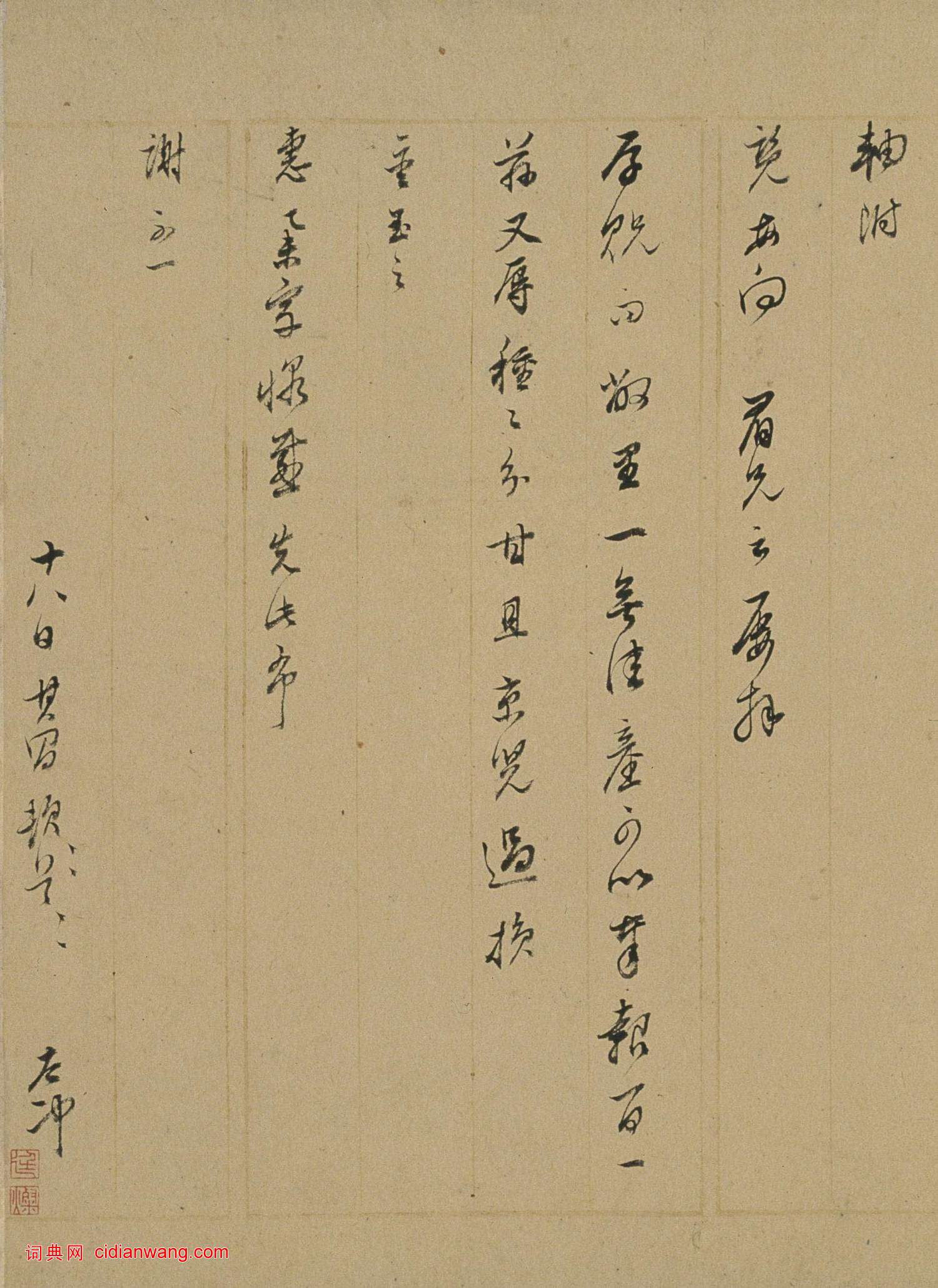 其昌頓首頓首。左沖。書成適小僕無便舟,敬附□卿使者以上。
