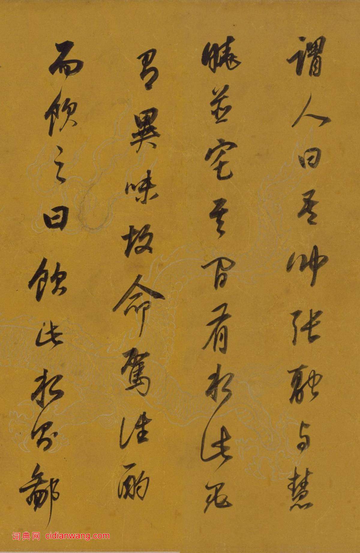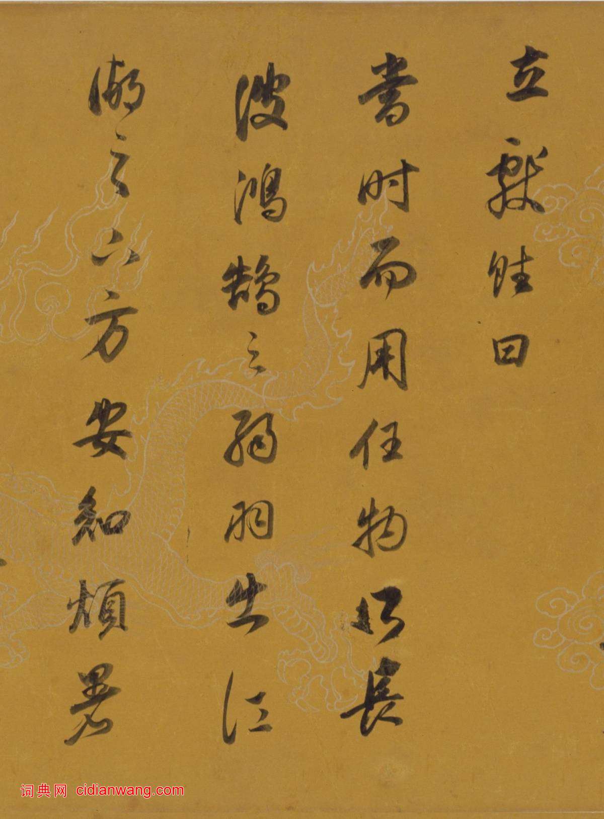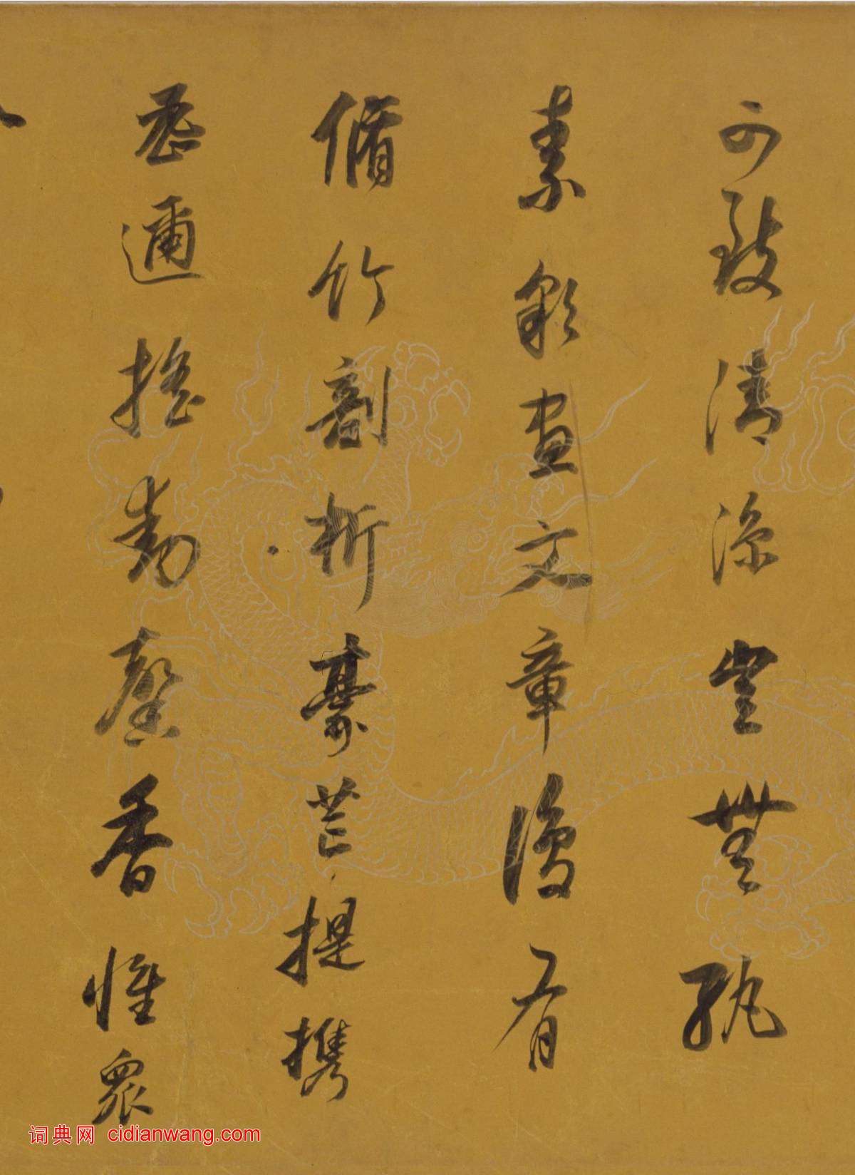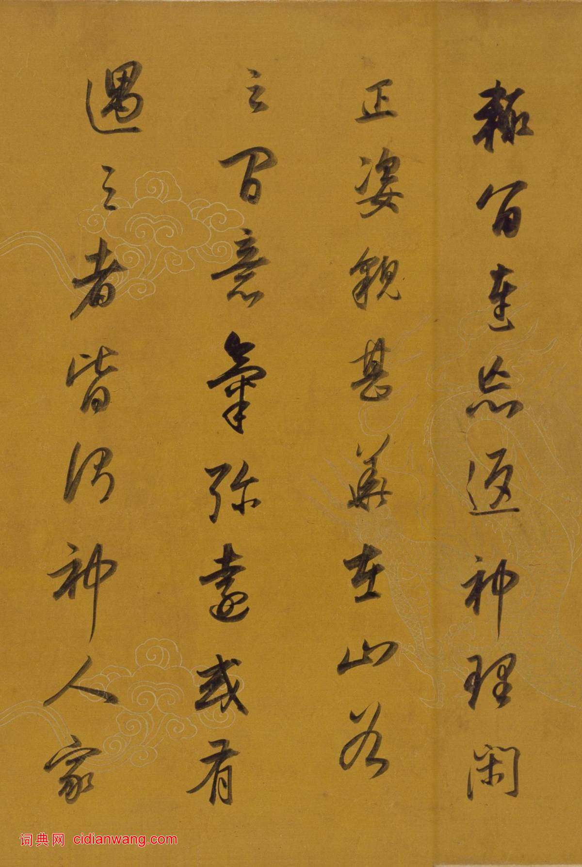 本幅所用之雲龍箋紙極為考究,故董氏以佳墨謹慎書之,紙色墨采,煥然生輝。全卷行款勻整,字勢內斂,頗有顏平原樸厚之氣,與常見偏於流美之董書風格不同。(撰稿人:金運昌)