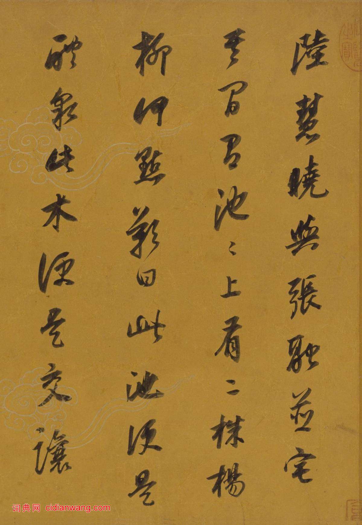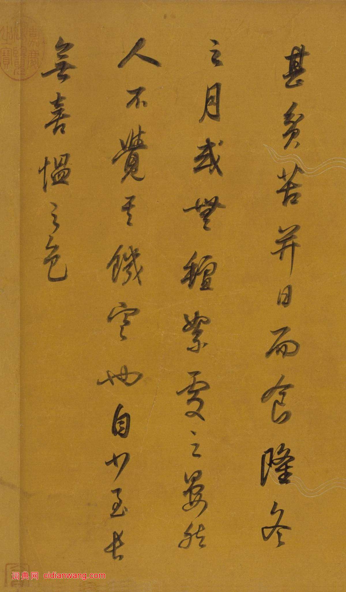 鑑藏印鈐“乾隆御覽之寶”、“三希堂精鑒璽”、“嘉慶御覽之寶”、“石渠寶笈”、“養心殿鑑藏寶”等。