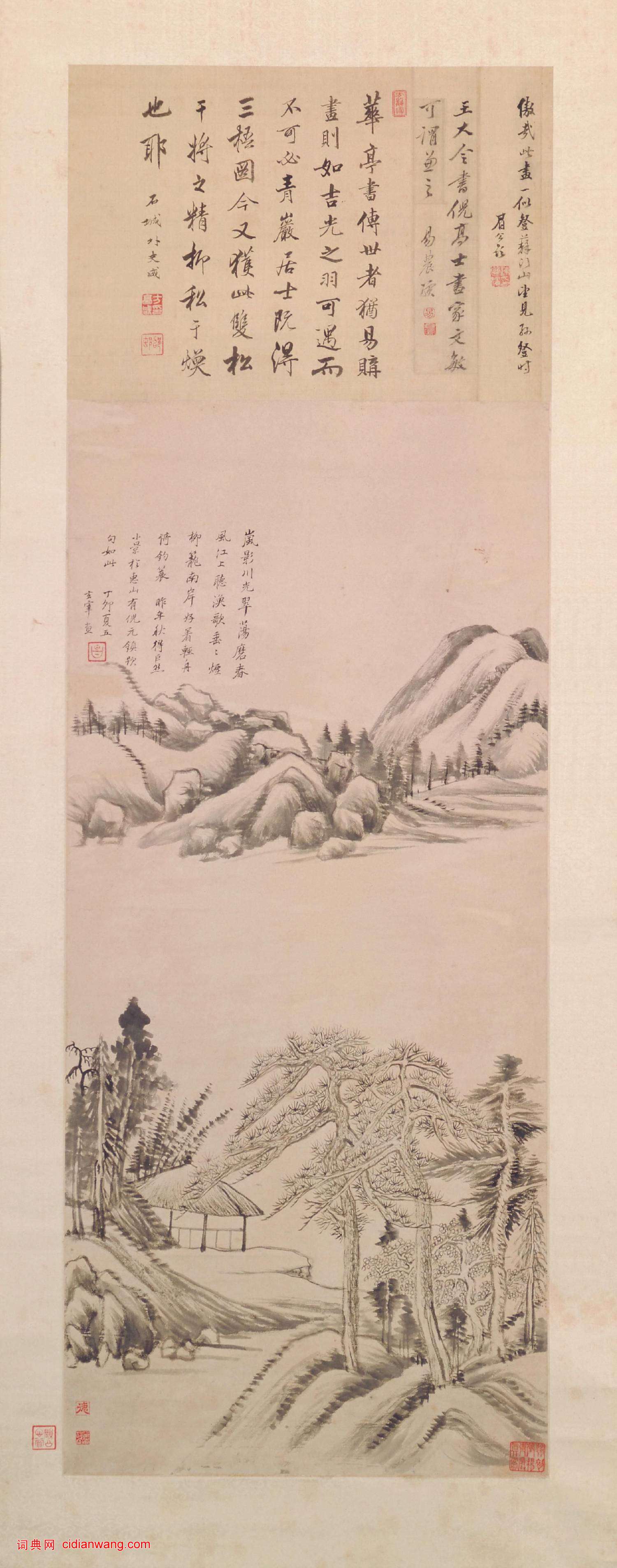 《仿巨然山水》軸,明,董其昌繪,紙本,墨筆,縱101.7厘米,橫46.7厘米,北京故宮博物院藏。