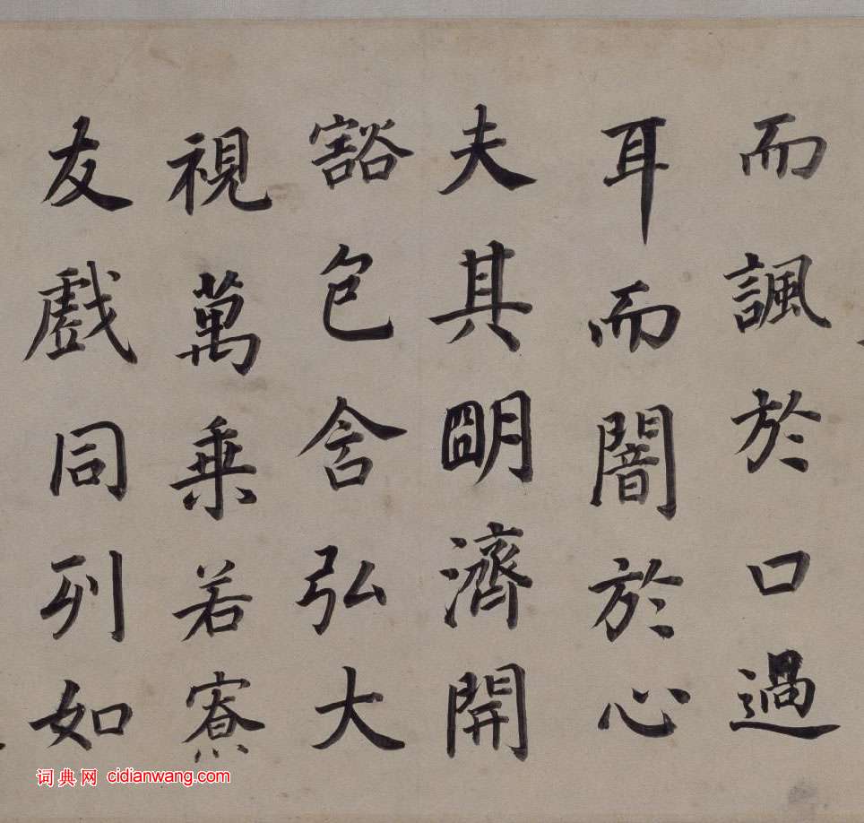 該卷師法顏真卿,落筆精絕,筆法勁健,意境高遠,為董氏中年時期楷書的代表性傑作,清裴景福稱此作有“雲鶴游天,群鴻戲海”之美。卷首所臨碑額“漢大中大夫東方先生畫贊碑”更為其罕見之篆書作品。