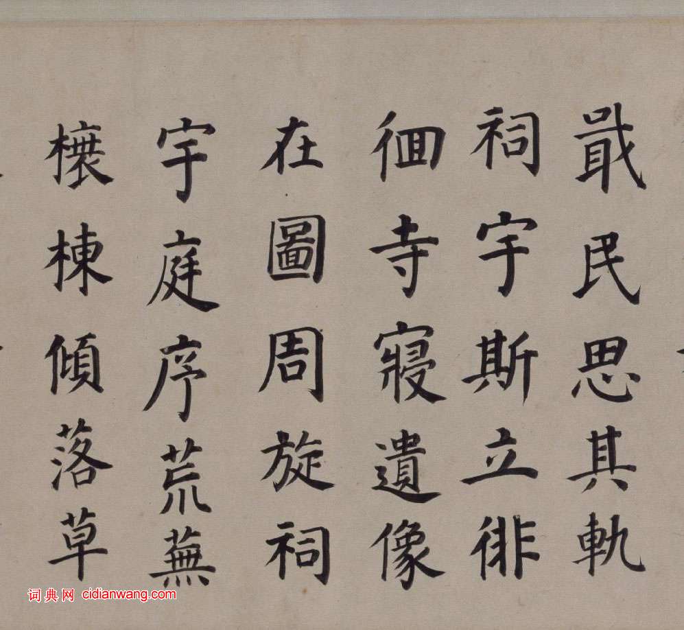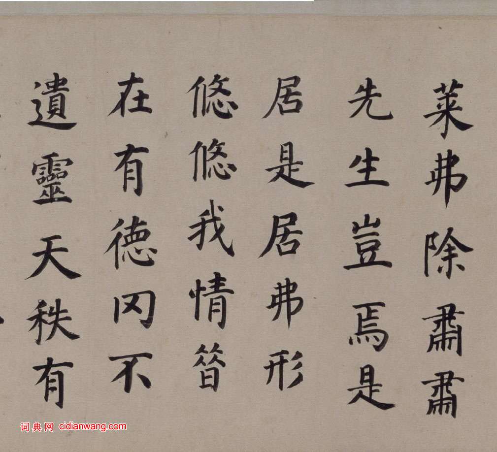 矯矯先生,肥遁居貞。退不終否,進亦避榮。臨世濯足,希古振纓。涅而無滓,既濁能清。無滓伊何,高明克柔。能清伊何,視汙若浮。樂在必行,處淪罔憂。跨世凌時,遠蹈獨游。瞻望往代,爰想遐蹤。邈邈先生,其道猶龍。染跡朝隱,和而不同。棲遲下位,聊以從容。我來自東,言適茲邑。敬問墟墳,企佇原隰。墟墓徒存,精靈永戢。民思其軌,祠宇斯立,徘徊寺寢,遺像在圖,周旋祠宇,庭序荒蕪。榱棟傾落,草萊弗除。肅肅先生,豈焉是居,是居弗形,悠悠我情。昔在有德,罔不遺靈,天秩有禮,神監孔明。仿佛風塵,用垂頌聲。