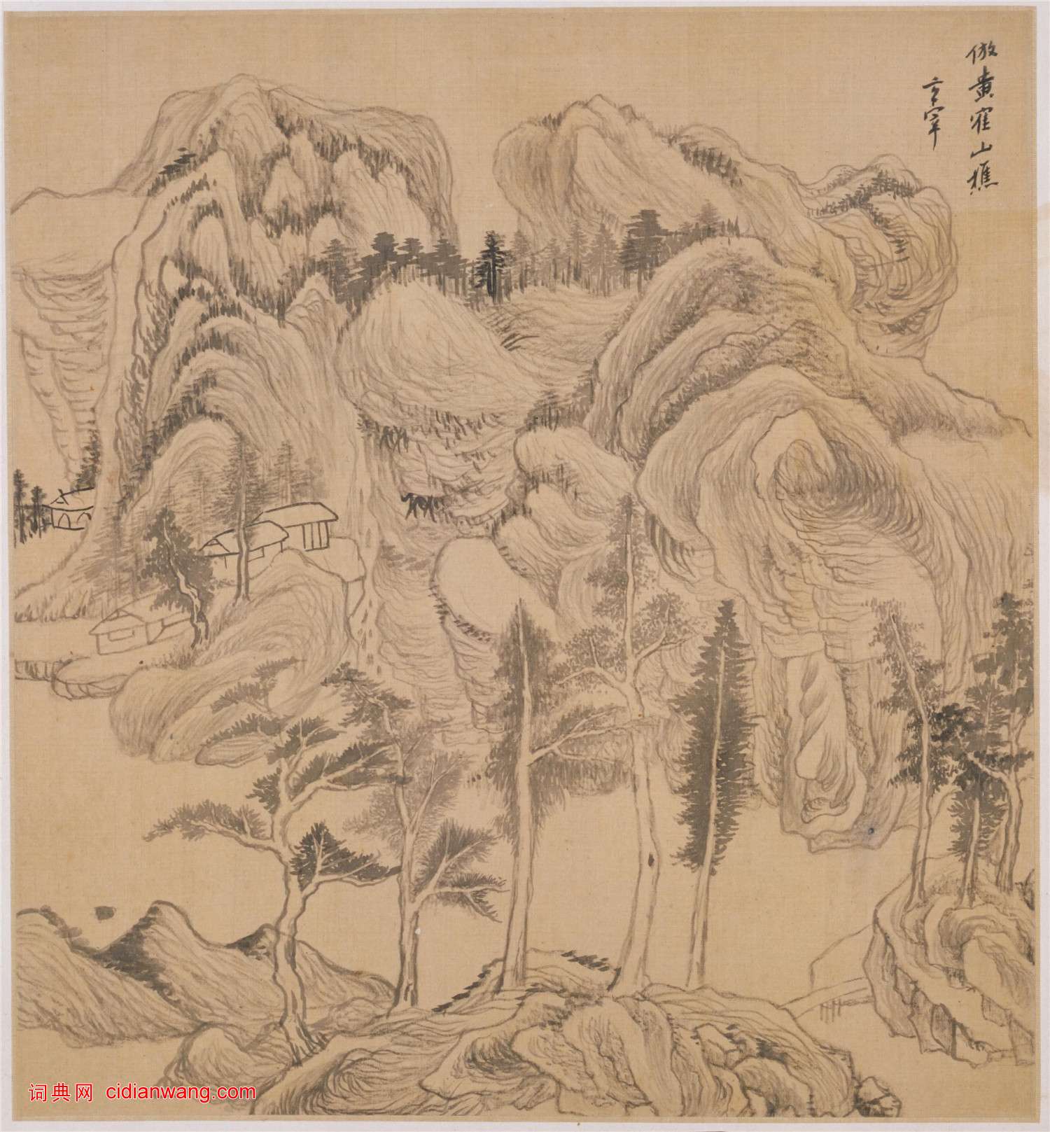 第一開,本幅自題:“仿黃子久,玄宰。”