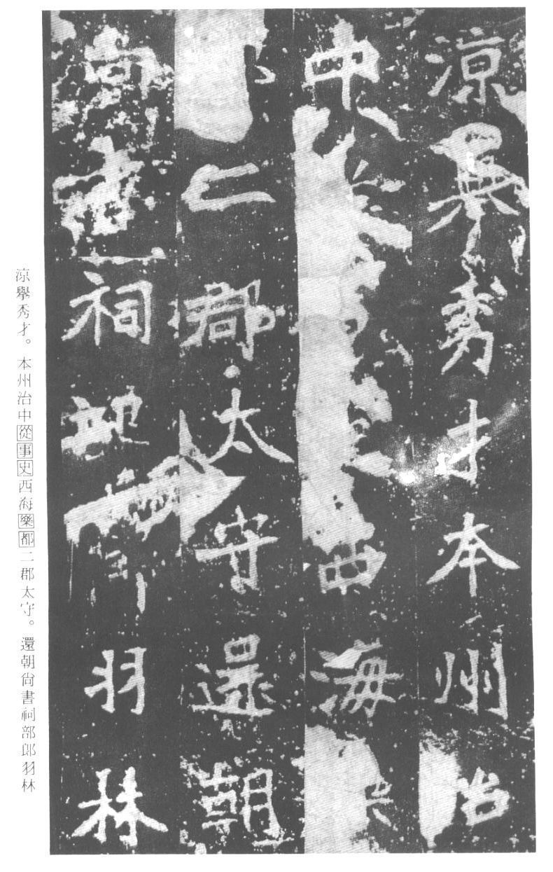君諱猛龍,字神冏(jiong)。南陽白水人也。其氏族分興。源流所出。故已備詳世錄。不復具載。????盛。蓊 (weng) 郁(yu)於帝皇之始。德星??。曜(yao)像於朱鳥之間。淵玄萬壑之中。巉(chan)岩千峰之上。奕(yi)葉清高。煥(huan)乎篇牘(du)矣。周宣時。??張仲。詩人詠(yong)其孝友。光緝姬(ji)?。中興是賴。晉大夫張老(?)。春秋嘉其聲績。漢初趙景王張耳。浮沉秦漢之間。終跨列士之賞。才幹世著。君其後也。魏明帝國中。西中郎將使持節平西將軍涼州刺史瑍(huan,煥?)之十世孫。八世祖軌。帝永興中。使持節安西將軍護羌校尉涼州刺史西平公。七世祖素。軌之第三子。晉明帝太寧中。臨羌(qiang)都尉平西將軍西海晉昌金城武威四郡太守。遂家武威。高祖鍾信。涼州武宣王大沮(ju)渠時。建威將軍武威太守。曾祖章。偽涼(liang)舉重秀才。本州治中從事史西海樂都二郡太守。還朝尚書祠(ci)部郎羽林監。祖興宗。偽涼(liang)都營護軍建節將軍饒(rao)河黃河二郡太守。父生樂。?????????????歸國。青衿(jin,意同襟)之志。白首方堅。君體稟(bing)河靈。神資岳(甚?)秀。桂質蘭儀。點弱露以懷芳。松心?節。??????。???成。自??朗若新蘅(heng)之當春。初荷之出水。入孝出第。邦閭(lv)有名。雖黃金未應。無慚郭氏。友朋??。交遊??。??超遙。蒙箏人表。年廿(nian)七。遭父憂。寢食過禮。泣血情深。假使曾柴更世。寧異今德。既傾乾覆。唯恃(shi)坤(kun)慈。冬溫夏清。曉夕承奉。家貧致養。不辭採運之勤(同“勤”)。年卅(sa)九。丁母艱。勺(shao)飲不入。偷魂七朝。磬(qing)力盡思備之生死。脫時當宣尼無愧。深嘆每事過人。孤風獨超。令譽日新。聲馳天紫。以延昌中出身。除奉朝請。優遊文省。朋儕(chai)慕其雅尚。朝廷以君陰望如此。德?宣暢。以熙(xi)平之年。除魯郡太守。治民以禮。移風以樂。如傷之痛無怠(dai).於夙宵。若子之愛。有懷於心目。是使學校克修比屋清業農棄(桑?)勸課?織以登入璄(jing,境?)觀朝。莫不禮讓。化?無心。草石如變。恩及泉水。禽魚自安。勝殘不待賒(she)年。有成期月而已。遂令講習之音。再聲於闕里。來蘇之歌。復詠於洙(誅?)中。京兆五守。無以克(kei克?)加。河南二尹。裁可若茲。雖名位未一。風???。且易俗之?。黃侯不足比功。宵魚之感。密子寧獨稱德。至乃辭金退玉之貞耿。撥葵去織之信義。方之我君。今猶古也。詩云。愷(kai)悌(ti)君子。民之父母。實恐韶(shao)曦(xi)遷影。東風改吹。盡地民庶。逆深泫(xuan)慕是以刊石題詠。以旌(jing)盛美。誠?能式。闡(chan)鴻?。庶揚 烈?。其辭曰。氏煥(huan)天文。體承帝胤(yin)。神秀春方。靈源在震。積石千尋。長松萬刃軒冕周漢。冠蓋魏晉。河靈岳秀。月起景飛。窮神開照。式誕英徽。高山仰止。從善如歸。唯德是蹈。唯仁是依。棲(qi)遲下庭。素心若雪。鶴響難留。清音遐發。天心乃眷(juan)。觀光玉闕(que)。浣(huan)紱(fu)紫?。承華煙月。妙簡唯?。剖符儒鄉。分金沂(yi)道。裂錦鄒方。春明好養。溫而?霜。乃如之人。實國之良。禮之恤(xu)。小大以情。洗。濯(zhuo)此群冥。雲褰(qian)天淨。千里開明。學建禮修。風教反正。野畔讓耕。林洗濯(zhuo)中衣可改。留我明聖。何以勿剪恩深在民。何以鳧(fu) 憘(xi是否同喜?字典查不到)風化移新。飲河止滿。度海迷津。勒石圖。永。蕩寇將軍魯郡丞北平。義主參軍事廣平宋撫(fu)民。義主 驤(xiang)府騎兵參軍驤威府長史征魯府治城軍主?軍?。義主本郡二政主簿。義主顏路。義主離狐令宋承憘。汾陽縣義主南城令嚴孝武。義主?賢文。陽平縣義主州主簿王盆生。造頌四年。正光三年正月廿三日訖(qi,記?)。