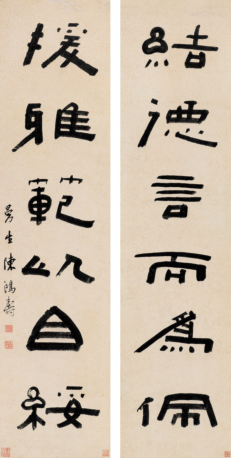 書法欣賞魏晉書法唐朝書法宋朝書法元朝書法明朝書法清朝書法近現代書法字典網>> 歷代書法>> 清朝>> 陳鴻壽·隸書六言聯正文 陳鴻壽·隸書六言聯作者:陳鴻壽 書體:隸書 結德言而為佩,援雅範以自綏。陳鴻壽的相關書法作品:陳鴻壽·隸書六言聯 陳鴻壽隸書《得魚賣畫四言聯》 陳鴻壽《隸書七言聯》 陳鴻壽行書《彝鼎醴泉七言聯》 陳鴻壽《行書蔡襄精茶帖軸》 陳鴻壽《行書七言詩軸》 陳鴻壽《隸書五言聯》 相關文章:傅山《草書虹巢》詩軸 (草書)傅山 《草書虹巢》詩軸 絹本 192cm×45cm 山西省博物院藏 釋...張瑞圖行書論書卷 (行書)張瑞圖行書論書卷 綾本 縱25厘米 橫274厘米 安徽省博物館藏【資料來源】《...蘇軾《覆盆子帖》 (行書)【釋文】覆盆子甚煩采寄,感怍之至。令子一相訪,值出未見,當令人呼見之也。季常先生...劉重慶·跋趙孟頫《吳興賦》 (行書)劉重慶跋趙孟頫《吳興賦》,縱25.2厘米。現藏浙江省博物館。蔡襄的書法大全 (行書)蔡襄像,清人繪蔡襄學識淵博,書藝深湛,又精於茶道,德性端厚亦為世人所敬,其書法與...倪元璐草書《書林逋即席送江夏茂才七絕詩軸》 (草書)倪元璐《書林逋“即席送江夏茂才”七絕詩軸》絹本草書 159×51cm 北京匡時...趙佶小楷《千字文》瘦金體 (小楷)趙佶小楷書千字文(局部) 縱30.9、橫322.1厘米,朱絲界欄,素箋本,上海博...王守仁《上急缺地方官員疏手稿》 (草書)王守仁《上急缺地方官員疏手稿》40×119cm 嘉靖七年(1528)中國國家博...鄭簠隸書《古君子行五言詩》 (隸書)鄭簠《隸書古君子行五言詩》 水墨紙本 179.5×53cm(原為廣東五桂山房歐...沈尹默楷書《禁經永字八法》 (楷書)沈尹默楷書《禁經永字八法》釋文古人用筆之術,多於永字取法,以其八法之勢,能通一切...