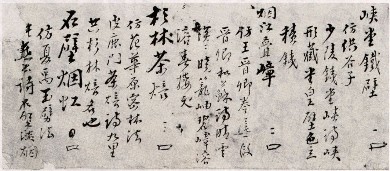 書法欣賞魏晉書法唐朝書法宋朝書法元朝書法明朝書法清朝書法近現代書法字典網>> 歷代書法>> 清朝>> 阮元·《石畫記》底稿正文 阮元·《石畫記》底稿作者:阮元 書體:行書 阮元《石畫記》底稿,紙本,大小不一。阮元在任雲、貴總督時,曾在許多具有天然圖畫的各色大理石上題識,後來曾編《石畫記》一書,書有刻本傳世。這裡介紹的是《石畫記》一書的底稿,舟齋收藏。底稿大小不一,達一百多張,大者如一頁稿紙,小者僅火柴盒大小,紙張質量也是不一,可見是阮元靈感一到,隨手寫來。字型以行書為主,也有隸書、篆書、楷書,反映了阮元書法的多種面目。1 2 3 4 5 6 7 8 9 10 下一頁 尾 頁阮元的相關書法作品:阮元·行書卷 阮元《臨乙瑛碑》 阮元《隸書含和年豐八言聯》 阮元《行書題畫詩軸》 阮元《京邸看花詩》 阮元·《石畫記》底稿 阮元《行書偶試但拋七言聯》 相關文章:左宗棠行書《野廬青山七言聯》 (行書)左宗棠《行書“野廬青山”七言聯》紙本行書 176.4×37.6cm×2 台北...汪士慎隸書《錄元韓性過天衣寺詩軸》 (隸書)汪士慎《隸書錄元韓性過天衣寺詩軸》紙本隸書 140×35.5cm 濟南市博物館...范仲淹《遠行帖》 (行書)【釋文】仲淹再拜,運使學士四兄:兩次捧教,不早修答,牽仍故也。吳親郎中經過有失款...康有為《行草書軸》 (行草)康有為《行草書軸》 241.7厘米×121.5厘米 汕頭市博物館藏選自2003...傅山《行草書七絕一首》 (行草)傅山《行草書七絕一首》綾本立軸 185×51cm 福建博物院藏 釋文:乾是詩...陳洪綬行草《七絕詩扇面》 (行草)陳洪綬《行草七絕詩》扇面 紙本 約順治六年(約1649)安徽省博物館藏釋文:舊...趙之琛《隸書七言聯》 (隸書)趙之琛《隸書七言聯》,西泠印社藏。梁巘《行草論書軸》 (行草)梁巘《行草論書軸》紙本行草書 104×51cm 安徽省博物館藏。 《行草論書軸...李瑞清《楷書虛室清歌五言聯》 (楷書)李瑞清《楷書虛室清歌五言聯》 177×46cm×2 紙本 1919年 上...陳淳·《荷花小鳥圖》題跋 (行書)陳淳《荷花小鳥圖》題跋,水墨紙本。