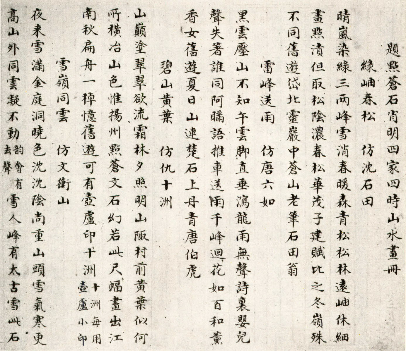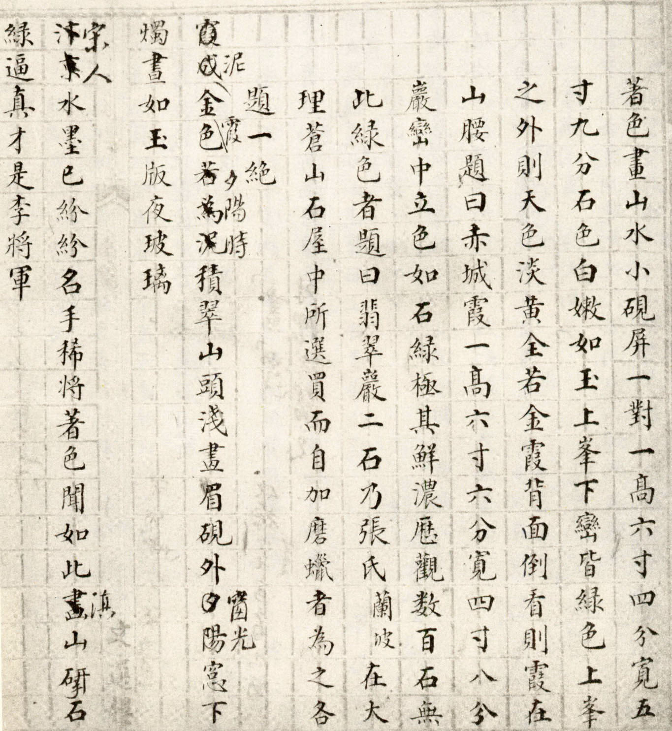 資源下載魏晉書法唐朝書法宋朝書法元朝書法明朝書法清朝書法近現代書法字典網>> 歷代書法>> 清朝>> 阮元·《石畫記》底稿(9)正文 阮元·《石畫記》底稿(9)作者:阮元 書體:行書 首 頁 上一頁 5 6 7 8 9 10 11 12 13 14 下一頁 尾 頁阮元的相關書法作品:阮元《臨乙瑛碑》 阮元《行書偶試但拋七言聯》 阮元《隸書含和年豐八言聯》 阮元·行書卷 阮元《行書題畫詩軸》 阮元·《石畫記》底稿 阮元《京邸看花詩》 相關文章:陳洪綬《行書致秋老道弟尺牘》 (行書)陳洪綬《行書致秋老道弟尺牘》紙本 釋文:弟甚苦賓士,又甚苦主人賓士。不唯筆墨不靈...郭天錫·跋《神龍蘭亭序》 (楷書)郭天錫跋《神龍蘭亭序》,楷書,縱24.5cm,北京故宮博物院藏。郭天錫(1227...王世貞·跋柳公權《蘭亭詩》 (行書)王世貞跋柳公權《蘭亭詩》,行書。北京故宮博物院藏。高清大圖點擊下一頁王鐸草書《為葆光張老親翁書》詩卷 (草書)王鐸草書《為葆光張老親翁書》詩卷 1065年作 縱30厘米 橫364.5厘米 北...李賢·跋歐陽修《集古錄跋尾》 (行書)李賢跋歐陽修《集古錄跋尾》,行書。宋濂·跋虞世南《摹蘭亭序》 (楷書)宋濂跋虞世南《摹蘭亭序》,縱24.5厘米。現藏於北京故宮博物院。柯九思·跋董源《夏景山口待渡圖》 (行書)柯九思 跋董源《夏景山口待渡圖》,遼寧省博物館藏。《聖教序》起筆規律和收筆規律分析筆畫起筆規律分析收筆規律分析徐三庚《隸書楊柳芙容七言聯》 (隸書)徐三庚《隸書楊柳芙容七言聯》紙本隸書 134.8×32.2cm×2 浙江省博...朱德潤·跋黃宗道《獲鹿圖》 (行書)朱德潤跋黃宗道《獲鹿圖》,美國大都會藏。