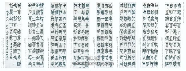 書法欣賞魏晉書法唐朝書法宋朝書法元朝書法明朝書法清朝書法近現代書法字典網>> 歷代書法>> 清朝>> 趙之謙《群臣治要引三略》八條屏正文 趙之謙《群臣治要引三略》八條屏作者:趙之謙 書體:篆書 趙之謙《篆書群臣治要引三略八條屏》,174.4×43.0cm×8。光緒四年戊寅(1876年),趙之謙時年五十歲。1 2 3 4 下一頁 尾 頁趙之謙的相關書法作品:趙之謙《楷書憩雲槎橫幅》 趙之謙《群臣治要引三略》八條屏 趙之謙《行書五言詩紈扇》 趙之謙《篆書吉陽山館匾額》 趙之謙行楷《集曾鞏詩句七言聯》 趙之謙《行書致蔚青手札散冊》 趙之謙《楷書風流辨雕八言聯》 趙之謙《書古人句四條屏》 趙之謙《行書搖筆題詩七言聯》 相關文章:唐寅行書《尺牘之一》 (行書)唐寅《尺牘之一》紙本行書 22.6×26.5cm 台北故宮博物院藏 釋文:侍生...張雨行書《登南峰絕頂七言律詩軸》 (行書)張雨《登南峰絕頂七言律詩軸》 紙本 108.4×42.6cm 無紀年 台北故宮...宋珏·題鮮于樞《韓愈送李願歸盤谷序卷》 (行書)【釋文】曾見吾家仲溫以章草書此序,頗脫筆墨習氣。今見鮮于困學手跡,又在仲溫之上。...傅堯俞·蒸燠帖 (行楷)傅堯俞《蒸燠帖》,紙本,行楷書,縱26.3厘米,橫17.3厘米。《蒸燠帖》是傅堯...金農《隸書題畫》 (隸書)隸書題畫 年代不詳 紙本 縱149厘米 橫146厘米 天津藝術博物館藏法若真草書《草堂詩軸》 (草書)法若真《草書草堂詩軸》紙本草書 125.8×55.1cm 北京故宮博物院藏釋...文徵明《行書午門朝見詩》 (行書)文徵明《行書午門朝見詩》,書於丙辰(1556)年,文徵明時86歲:釋文:午門朝見...趙孟頫楷書《杭州福神觀記》 (楷書)趙孟頫楷書書法《杭州福神觀記卷》,紙本,縱34.2cm,橫797.8cm,北京故...惲壽平《臨帖三種》 (行書)惲壽平《臨帖三種》,17×50.8cm。美國紐約大都會藝術博物館藏,顧洛阜(J...北魏《始平公造像記》 (楷書)《始平公造像記》全稱《比丘慧成為亡父洛川刺史始平公造像記》。此記署為孟達文、朱義...