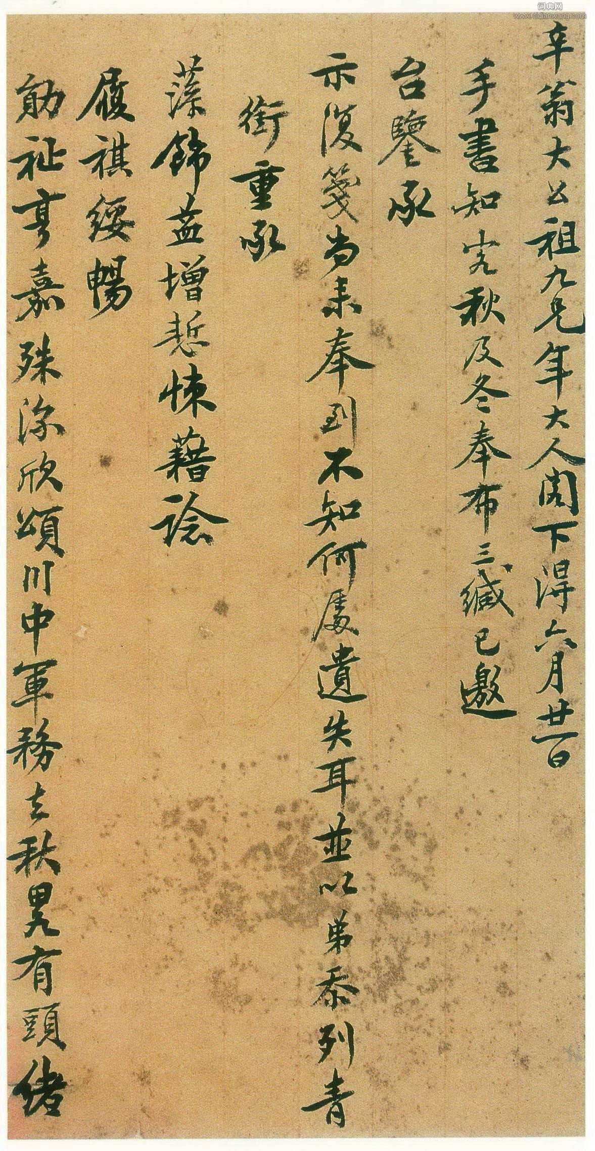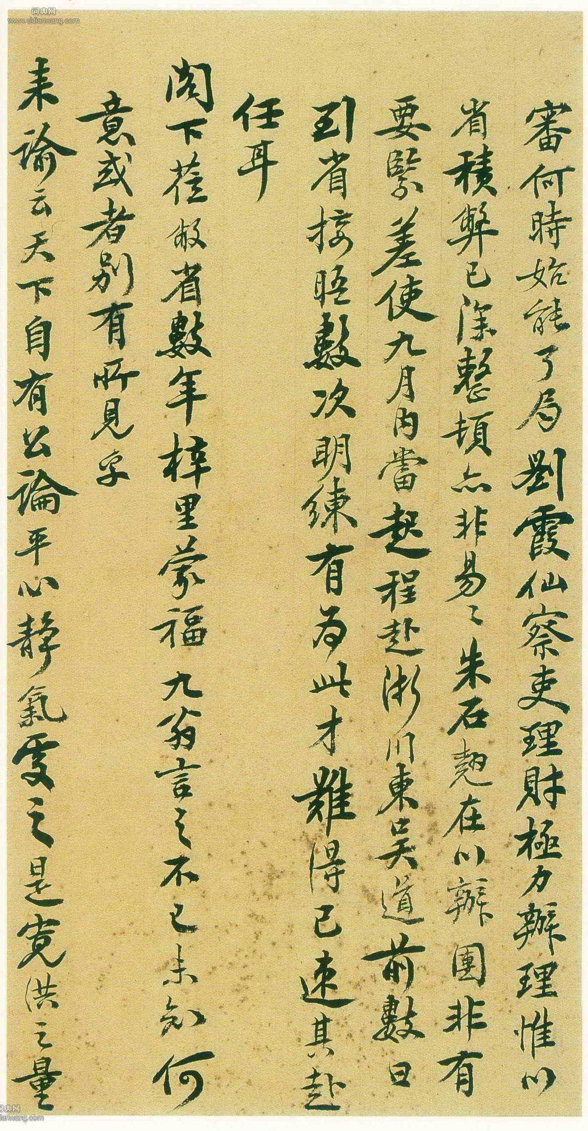 書法欣賞魏晉書法唐朝書法宋朝書法元朝書法明朝書法清朝書法近現代書法字典網>> 歷代書法>> 清朝>> 駱秉章《致辛翁手札》(3)正文 駱秉章《致辛翁手札》(3)作者:駱秉章 書體:行書 首 頁 上一頁 1 2 3 駱秉章的相關書法作品:駱秉章《致辛翁手札》 駱秉章楷書《天地文章七言聯》 相關文章:錢坫《篆書菩薩蠻詞》軸 (篆書)錢坫《篆書菩薩蠻詞》軸 紙本 篆書 169.5X57cm 西泠印社藏資料來自《西...劉炳森隸書字帖《岳陽樓記》 (隸書)劉炳森隸書字帖《岳陽樓記》欣賞,書法名家書名文系列之范仲淹岳陽樓記:查士標行書《唐岑參終南東溪中作詩軸》 (行書)查士標《行書唐岑參終南東溪中作詩軸》綾本行書 130×54.4cm 安徽省博物...蘇軾行書《尊丈帖》 (行書)蘇軾《尊丈帖》 約書於1093年(元祐八年) 釋文:尊丈不及作書 近以中婦喪亡 ...李建中《土母帖》 (行書)【釋文】所示要土母,今得一小籠子,封全咨送,不知可用否?是新安缺門所出者,復未知...米芾·糧院帖 (行書)【釋文】芾再啟。歷子倅車送去,糧院欲推過他人,不任其責。儻糧院知於法無礙,即自勘...李邕·行書李思訓碑 (行書)宋拓唐李邕行書李思訓碑《李思訓碑》全名為《雲麾將軍李思訓碑》,碑在陝西蒲城。因碑...趙之琛《隸書七言聯》 (隸書)趙之琛《隸書七言聯》,西泠印社藏。黃庭堅行書《致天民知命大主薄書》 (行書)黃庭堅《致天民知命大主薄書》紙本行書。25.5×45.9cm 台北故宮博物院藏...古人的文房雅器45種我們說得多的通常是文房四寶,也都知道筆墨紙硯,但是古人的文房其他寶貝卻常被我們忽...