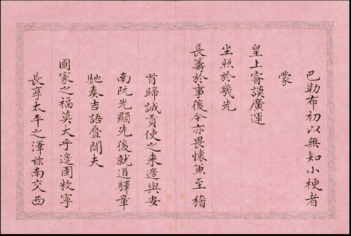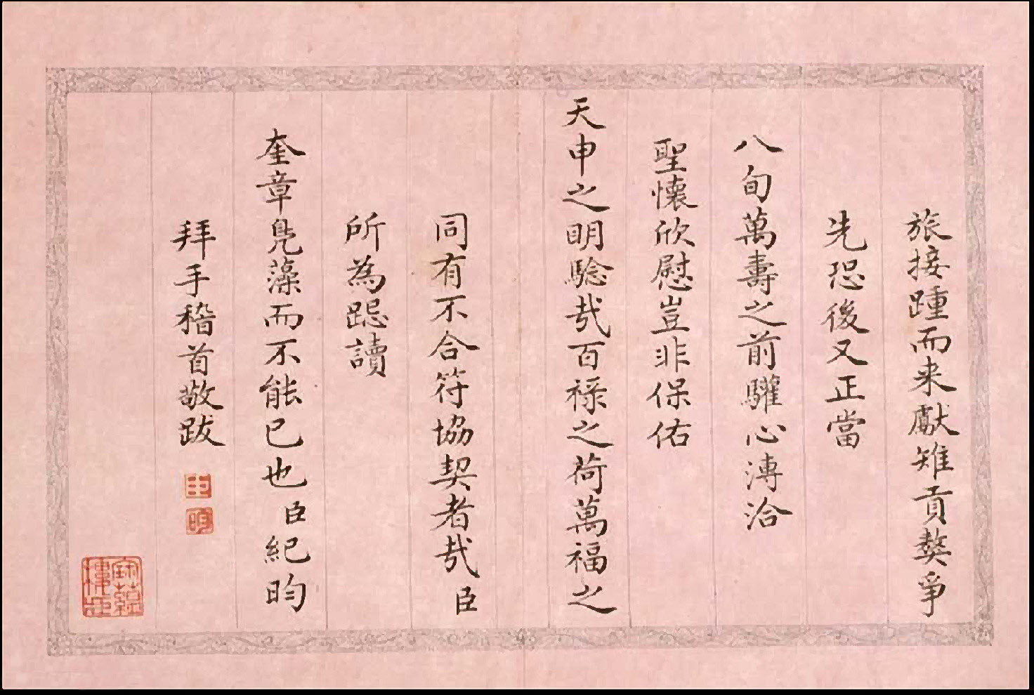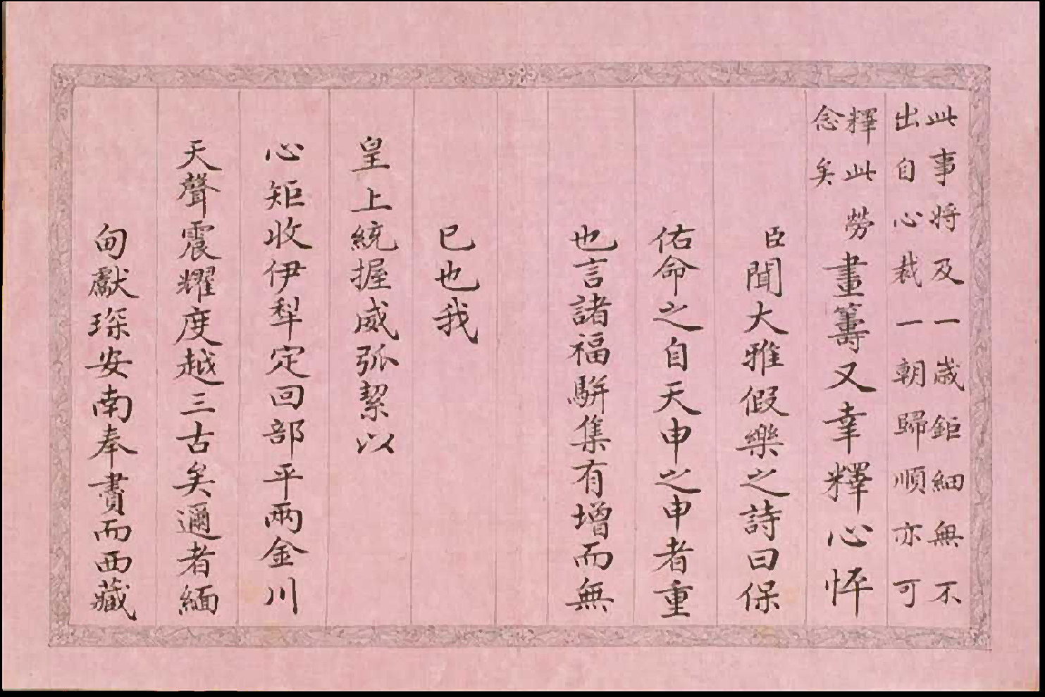 資源下載魏晉書法唐朝書法宋朝書法元朝書法明朝書法清朝書法近現代書法字典網>> 歷代書法>> 清朝>> 紀昀《弘曆西旅歸誠詩》(3)正文 紀昀《弘曆西旅歸誠詩》(3)作者:紀昀 書體:楷書 首 頁 上一頁 1 2 3相關文章:田英章楷書《九成宮》描紅本字帖 (楷書)《九成宮醴泉銘》(簡稱《醴泉銘》、《九成宮》、《九成宮碑》),是唐初的一座名碑,...曹寶麟《臨王羲之蘭亭序》 (行書)曹寶麟《臨王羲之蘭亭序》 2009年中秋。釋文:略 款署:右王右軍《蘭亭敘》,號...楊嘉祚·跋虞世南《摹蘭亭序》 (草書)楊嘉祚跋虞世南《摹蘭亭序》,縱24.5厘米。現藏於北京故宮博物院。李文田《楷書威鳳芝蘭八言聯》 (楷書)李文田《楷書威鳳芝蘭八言聯》紙本楷書 159×33.8cm×2 澳大利亞新南...歐楷《九成宮醴泉銘》集字聯句欣賞臨摹帖是初學書法者的必經之路,但臨摹不是目的。學像了碑帖還要能夠脫開碑帖寫好任意...李嘉胤草書《賈至贈陝掾梁宏詩軸》 (草書)李嘉胤《草書賈至贈陝掾梁宏詩軸》紙本草書 57.1×27.8cm 蘇州博物館藏...吳大澂篆書《李公廟碑》 (篆書)吳大澂畫像▼吳大澂《篆書李公廟碑》(選頁)吳大澂(一八三五--一九〇二),清代金...趙之琛《隸書臨成陽靈台碑軸》 (隸書)趙之琛《隸書臨成陽靈台碑軸》紙本隸書 136.7×42.6cm 浙江省博物館藏...唐寅行書《臨韓熙載夜宴圖題詩》 (行書)唐寅《臨韓熙載夜宴圖》絹本設色 30.8×547.8cm 重慶中國三峽博物館藏...張宇初·道家識語 (行草)【釋文】清微之謂道中之法也。以其非復天神霄酆岳者比焉。而非功行圓融。心法貫妙者。...