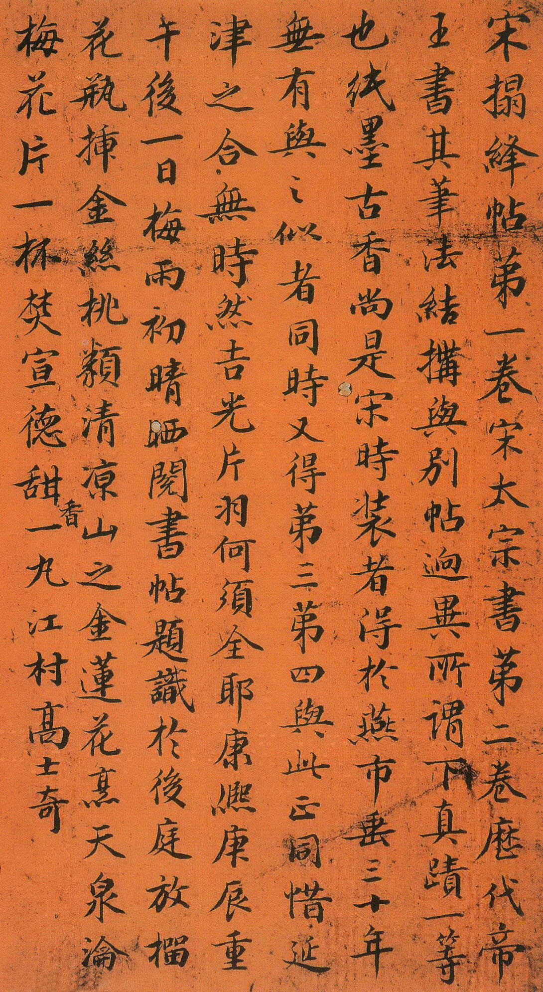 書法欣賞魏晉書法唐朝書法宋朝書法元朝書法明朝書法清朝書法近現代書法字典網>> 歷代書法>> 清朝>> 高士奇·跋《絳帖》正文 高士奇·跋《絳帖》作者:高士奇 書體:楷書 高士奇跋《絳帖》,楷書。高士奇的相關書法作品:高士奇·跋歐陽詢《仲尼夢奠帖》 高士奇·跋《絳帖》 高士奇《行書皇甫冉詩軸》 相關文章:倪元璐行草《賀文文起宮相舉子詩扇面》 (行草)倪元璐《賀文文起宮相舉子詩扇面》 金箋行草書。安徽省博物館藏釋文:十洞仙人伏闕呼...倪元璐草書《瀾園招飲詩扇面》 (草書)倪元璐《瀾園招飲詩扇面》 泥金紙本草書,17×52.5cm。北京故宮博物院藏釋...張照行書《臨宋人八書卷》 (行書)張照《臨宋人八書卷》絹本行書 22×302cm 吉林省博物院藏 釋文:略【資料...唐寅《行書七律四首詩卷》 (行書)唐寅《行書七律四首詩卷》紙本行書 23×286cm 天津博物館藏 釋文:聞太原...米萬鍾《草書石樑瀑布詩扇》 (草書)米萬鍾《草書石樑瀑布詩扇》上海博物館藏釋文:曇花亭子倚嵐開,雙蝶爭奔怒瀨催。澗溪...文徵明行書《立春進賀》七律立軸 (行書)文徵明行書《立春進賀》七律立軸釋文:玉殿千官拜冕旒,紫衣京兆在前頭。四時盛德初臨...趙孟頫《王羲之軼事帖》 (行書)趙孟頫行書《王羲之軼事帖》, 美國大都會博物館藏。張雨行書《登南峰絕頂七言律詩軸》 (行書)張雨《登南峰絕頂七言律詩軸》 紙本 108.4×42.6cm 無紀年 台北故宮...李陽冰篆書《般若台銘》 (篆書)李陽冰《般若台銘》 篆書,高近4米,寬近2米,4行,每字長約40厘米。寬25厘米...顧安行書《寄良輔徵君詩二首》 (行書)顧安《寄良輔徵君詩二首》 紙本行書 28.2×29.1cm 台北故宮博物院藏。...
