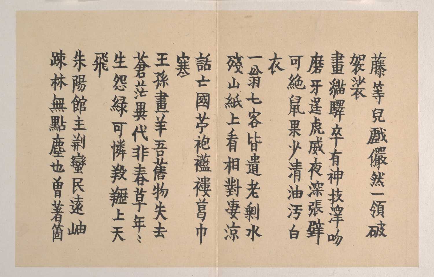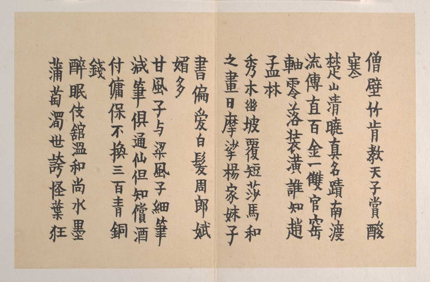 書法欣賞魏晉書法唐朝書法宋朝書法元朝書法明朝書法清朝書法近現代書法字典網>> 歷代書法>> 清朝>> 金農《為馬曰琯作畫詩》(2)正文 金農《為馬曰琯作畫詩》(2)作者:金農 書體:隸書 首 頁 上一頁 1 2 3 4 下一頁 尾 頁金農的相關書法作品:金農隸書《七言聯》 金農《隸書軸 》 金農《隸書題畫》 金農隸書《水樂洞小詩橫披》 金農《隸書語摘立軸》 金農隸書《范石湖先生句》 金農漆書古謠一首 金農隸書《節臨華山廟碑》 金農漆書《墨說蜀人景煥立軸》 相關文章:李方膺行書題《荷花圖》 (行書)李方膺《荷花圖》 133.5×44.8cm 乾隆八年(1743年)作 嘉德20...八大山人草書《題畫詩一首》 (草書)八大山人《題畫詩一首》軸 草書 167.4×70.8cm 日本東京國立博物館...蔡京行書《跋宋徽宗唐十八學士圖卷》 (行書)蔡京《跋宋徽宗唐十八學士圖卷》絹本 縱29.4cm 台北故宮博物院藏 釋文:唐太...蒲華行草《讀書看花七言聯》 (行草)蒲華《行草讀書看花七言聯》紙本行草 148.7×39.8cm×2 光緒二十一...劉炳森楷書《岳陽樓記》 (楷書)劉炳森字樹庵,號海村,幼年自號劉五先生。一九三七年八月出生於上海,祖籍天津武清。...洪亮吉篆書《警句軸》 (篆書)洪亮吉《警句軸》紙本篆書 171.7×36.3cm 上海博物館藏釋文:不懷寶以...石濤《行書扇面》 (行書)石濤《行書扇面》 紙本 上海博物館藏 【資料來源】《上海博物館藏中國明清書畫扇面...張鳳翼·題《李思訓碑》 (行書)張鳳翼題《李思訓碑》,行書。陳基《賢郎帖》 (行草)元 陳基 《賢郎帖》 紙本,北京故宮博物院藏。 陳基(1314—1370年),字...張瑞圖行書《獨嘯層岩第一峰詩》 (行書)這件書法立軸的內容是張瑞圖為一位姓杜的詩人寫的一首詩。 作品上的字距緊湊而行距較...