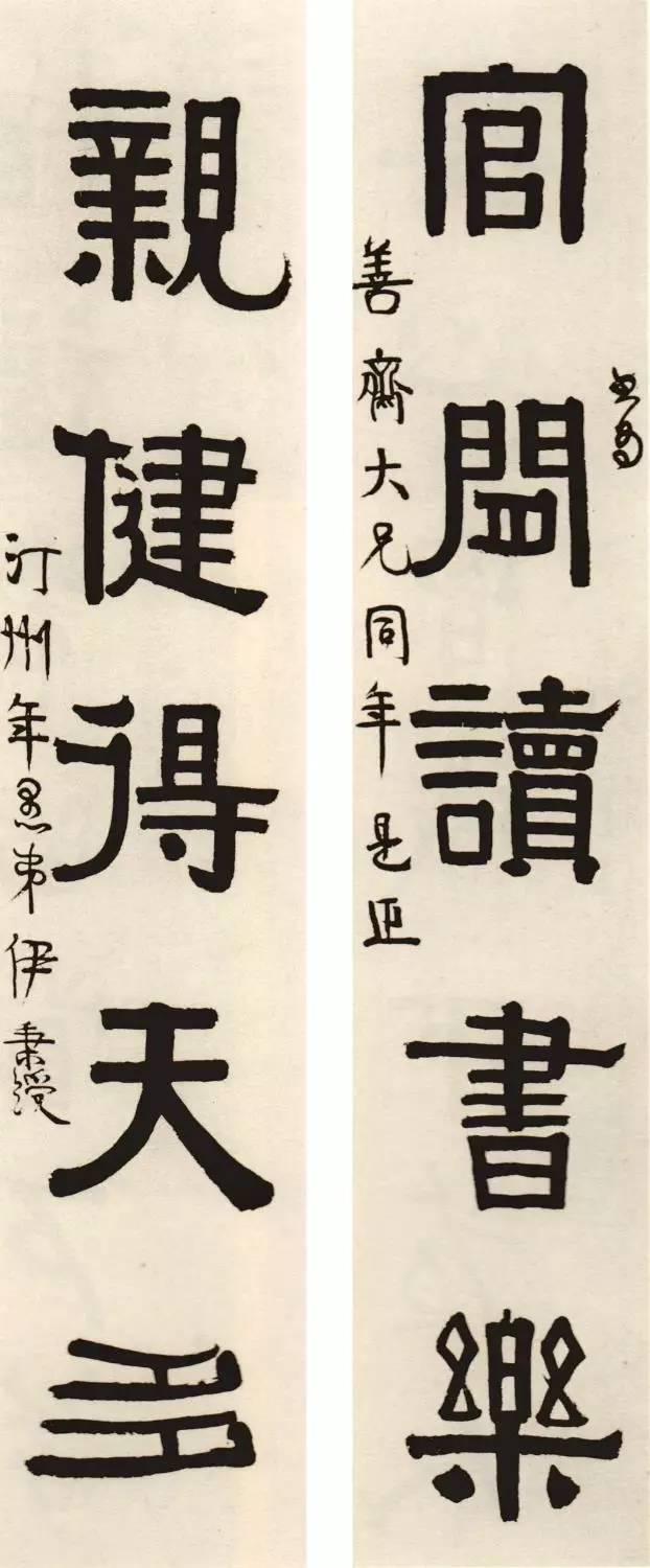 書法欣賞魏晉書法唐朝書法宋朝書法元朝書法明朝書法清朝書法近現代書法字典網>> 歷代書法>> 清朝>> 伊秉綬隸書楹聯32副(8)正文 伊秉綬隸書楹聯32副(8)作者:伊秉綬 書體:隸書 隸書五言聯 1814年作清詩宗韋柳,嘉酒集歐梅。閼逢閹茂之春,伊秉綬。隸書五言聯官閒讀書樂,親健得天多。書為善齋大兄同年是正,汀州年寓弟伊秉綬。首 頁 上一頁 4 5 6 7 8 9 10 11 12 13 下一頁 尾 頁伊秉綬的相關書法作品:伊秉綬《行書七言詩軸》 伊秉綬隸書《萬卷十年七言聯》 伊秉綬行書《張詠寄傳逸人詩軸》 伊秉綬隸書《臨裴岑紀功碑》 伊秉綬隸書《江山冰雪五言聯》 伊秉綬行書《薔薇花詩軸》 伊秉綬隸書《毋自欺齋橫額》 伊秉綬隸書《退一步齋橫幅》 伊秉綬隸書楹聯32副 相關文章:白珽·墨竹詩冊 (行書)【釋文】墨竹無師承。所師在真竹。牆頭風露枝。日夜看爛熟。李侯心獨苦。一筆不啻足。...楊法《篆書五言聯》 (篆書)楊法《篆書五言聯》90.3×21.8cm×2 浙江省博物館藏 轉自浙江省博物...米芾《惡札帖》 (行書)【釋文】芾啟,要惡札,是甚字,批及。芾頓首。章侯茂異。米芾《惡札帖》,紙本,行書...趙孟頫行書《書蘇軾西湖詩》 (行書)趙孟頫 《蘇軾西湖詩》。卷 33.8x133.8 台北故宮博物院藏本卷行書蘇軾詩...龍門二十品之《元燮造像題記》 (楷書)龍門二十品之《元燮造像題記》,全稱《魏聖朝太中大夫安定王元燮為亡祖等造像題記》。...吳榮光《中堂袁清容詩》 (行書)吳榮光《行書中堂袁清容詩》,選自廣東歷代書法展。姚鼐《行草積雨晴時七言詩軸》 (行草)姚鼐《行草積雨晴時七言詩軸》紙本行草書 108.5×27.5cm 北京市文物商...朱熹·跋歐陽修《集古錄跋》 (行書)【釋文】集古跋尾。以真蹟校印本。有不同者。韓公論之詳矣。然平泉草木記跋後。印本尚...陳鵬年《行書七絕詩軸》 (行書)陳鵬年《行書七絕詩軸》紙本行書 116×56cm 淮安市博物館藏釋文:楚雲西望...梁啓超《行書尺牘》 (行書)梁啓超行書尺牘 選自安徽省圖書館《館藏歷史人物手札選》