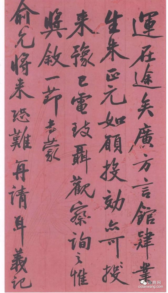 資源下載魏晉書法唐朝書法宋朝書法元朝書法明朝書法清朝書法近現代書法字典網>> 歷代書法>> 清朝>> 吳大澂行書手札(11)正文 吳大澂行書手札(11)作者:吳大澂 書體:行書 首 頁 上一頁 5 6 7 8 9 10 11 12 13 14 下一頁 尾 頁吳大澂的相關書法作品:吳大澂篆書《從善有懷八言聯》 吳大澂《篆書白鶴泉銘》 吳大澂篆書《集石鼓文樹古水流八言聯》 吳大澂篆書《李公廟碑》 吳大澂散氏盤集字聯 吳大澂《篆書知過論軸》 吳大澂篆書《臨段敦(簋)》 吳大澂行書《書示嶽麓書院肄業諸生手帖》 吳大澂《行書手札》 相關文章:田英章楷書《滕王閣序》 (楷書)田英章楷書《滕王閣序》,次庚寅孟秋玥日書,歐楷《滕王閣序》。釋文:南昌故郡,洪都...狂草大家陳淳書法小品欣賞 (草書)陳淳,名淳,字道復,後以字行,別字復甫,自號白陽山人。長洲人。陳淳自幼飽學,對於...葛元喆·跋米友仁《瀟湘奇觀圖》 (楷書)【釋文】米氏父子書畫擅當世,是卷沉著痛快,字如其圖,尤作全也。臨川元喆題。 ...米芾行書《海月都師帖》 (行書)米芾《海月都師帖》 此《海月都師帖》為繼錦堂藏帖拓片本,印章4枚“趙氏子印”、“...鄒元標·五言詩軸 (行書)鄒元標《五言詩軸》,行書。黃道周行草《偶逢越鳥信五律詩軸》 (草書)黃道周《偶逢越鳥信五律詩軸》 綾本 行草 204 ×51cm 台灣何創時書法...西周金文《散氏盤》書法 (篆書)《散氏盤》又名《散盤》,西周晚期金文,19行,350字。現藏台北故宮博物院。內容...饒介《行書七言律詩二首》 (行書)饒介《書七言律詩二首》紙本行書 24.5×49.1cm 台北故宮博物院 ...倪元璐《行書“槖駝亦易識”五律詩軸》 (行書)倪元璐《行書“槖駝亦易識”五律詩軸》綾本行書 177.8×48.2cm 廣東...石濤行書《觀蓮花峰詩帖》 (行書)石濤《觀蓮花峰詩帖》 紙本行書 北京故宮博物院藏 【資料來源】《中國書...