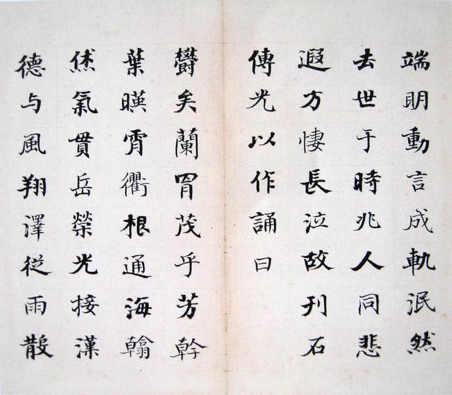 書法欣賞魏晉書法唐朝書法宋朝書法元朝書法明朝書法清朝書法近現代書法字典網>> 歷代書法>> 清朝>> 何紹基臨《張黑女墓誌》(3)正文 何紹基臨《張黑女墓誌》(3)作者:何紹基 書體:小楷 首 頁 上一頁 1 2 3 4 下一頁 尾 頁何紹基的相關書法作品:何紹基篆書《節錄庾信三月三日華林園馬射賦序四條屏》 何紹基楷書《鵬鶚龍鸞五言聯》 何紹基行書《七絕軸》 何紹基行書《集爭座位帖字長聯》 何紹基楷書《留得相於七言聯》 何紹基行書《錄黃山谷語軸》 何紹基行書《論書橫披》 何紹基楷書《乘興濟世七言聯》 何紹基行書《側身獨立七言聯》 相關文章:郭尚先《楷書黃庭內景經卷》 (楷書)郭尚先《楷書黃庭內景經卷》紙本楷書 36×268.5cm 北京故宮博物院藏 釋...王寵小楷《謝康樂詩》 (小楷)王寵《小楷謝康樂詩》扇面 金箋,楷書,縱17.7cm,橫54.3cm。 北京故宮...翁同龢楷書《守獨辭高八言聯》 (楷書)翁同龢《楷書守獨辭高八言聯》紙本楷書 171.2×33.8cm×2 台北故宮...米萬鍾行草《勺園次韻詩》 (行草)米萬鍾行草《勺園次韻詩》紙本 288×98.5cm 山西省博物館藏文徵明《草書七律立軸》 (草書)草書七律立軸 見於中國嘉德國際拍賣有限公司2005春季拍賣會中國古代書畫專場尺 ...怎樣臨習《禮器碑》 (不詳)《禮器碑》是東漢隸書成熟時期的代表作,在漢隸巾較為規範,是學習隸書的最佳範本之一...劉墉行書《致五兄札》 (行書)劉墉《致五兄札》(部分)紙本 24.5×10.3cm 日本梅舒適氏藏 【資料來...陸粲·行書事茗辨 (行書)陸粲《行書事茗辨》,於嘉靖乙末書於唐寅《事茗圖》卷後。縱31.1厘米,北京故宮博...趙之琛《隸書臨成陽靈台碑軸》 (隸書)趙之琛《隸書臨成陽靈台碑軸》紙本隸書 136.7×42.6cm 浙江省博物館藏...張瑞圖草書《郭璞遊仙詩》 (草書)張瑞圖《草書郭璞遊仙詩》, 遼寧省博物館藏。 此為張瑞圖草書節錄晉代郭璞的《遊仙...