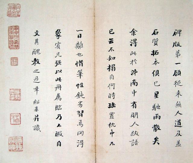【釋文】:魏故南陽張府君墓粁……(文略)遐風永邁,式銘幽傳; 張黑女銘,精整古渾,為元魏碑版弟一。顧從來無道及,蓋石質、拓本俱已星馳雨散矣。余得此於烴南,中有朋人跋語,已雲不知莪自何時。航置枕中,不一日離也。惜筆性鈍劣,習焉岡得。象賓兄強以此冊屬臨,乃不暇自文其醜,教之是幸,紹基並識。