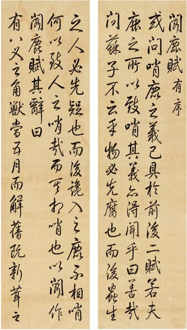 書法欣賞魏晉書法唐朝書法宋朝書法元朝書法明朝書法清朝書法近現代書法字典網>> 歷代書法>> 清朝>> 乾隆御筆《斗鹿賦》正文 乾隆御筆《斗鹿賦》作者:乾隆 書體:行書 乾隆在《斗鹿賦》中體現出三個重要的文學價值:一是體現出乾隆聖心天眷的仁義之心;二是文辭優美,讀之令人感慨萬端;三是代表著清代文賦的最高水平。1 2 下一頁 尾 頁乾隆的相關書法作品:乾隆行書御臨《聖教序》 乾隆小楷臨《王羲之東方朔像贊》 乾隆臨王羲之《蘭亭序》 乾隆御筆《斗鹿賦》 乾隆小楷臨《王羲之樂毅論》 相關文章:米芾·德忱帖 (行草)【釋文】五月四日,芾啟:蒙書為尉(通慰),審道味清適。漣,陋邦也,林君必能言之。...顏真卿雅集《竹山堂連句》 (楷書)顏真卿楷書《竹山堂連句》是魯公傳世不多的墨跡之一。雖然這幅作品沒有其他傳世作品的...法若真《行書七律詩軸》 (行書)法若真《行書七律詩軸》 中國國家博物館藏【資料來源】中國國家博物館網站東漢隸書《陽嘉二年題記》 (隸書)東漢 陽嘉二年題記 長95cm 寬50cm 重慶南川市雷劈石崖墓出土 釋文:陽嘉...鄭燮《草書七律》 (草書)鄭燮《草書七律》 紙本 91×51cm 西泠印社藏資料來自《西泠印社百年社藏...蔡京行書《跋宋徽宗唐十八學士圖卷》 (行書)蔡京《跋宋徽宗唐十八學士圖卷》絹本 縱29.4cm 台北故宮博物院藏 釋文:唐太...奚岡隸書《華言妙句七言聯》 (隸書)奚岡《隸書華言妙句七言聯》紙本隸書 154.8×31.4cm×2 浙江省博物...薛植行書《致雲林徵君尺牘》 (行書)薛植《致雲林徵君尺牘》 紙本 26X30.3cm 台北故宮博物院藏薛植《致雲林...張即之大字楷書《書杜詩卷》 (楷書)張即之《書杜詩卷》紙本楷書,35.5×1464.6cm 淳祐十年(1250)遼...唐寅《行書絕句四條屏》 (行書)釋文:杏花春雨晚晴天,篙檝沖煙放釣船;恰有一壺寒食酒,卻邀同局話新年。吳郡唐寅。...