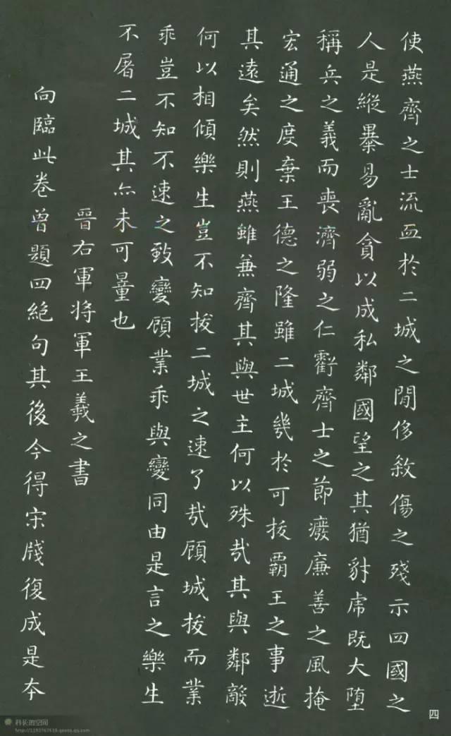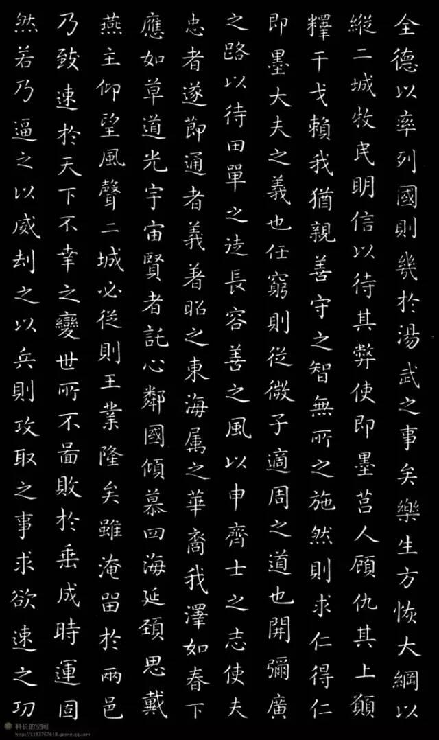 書法欣賞魏晉書法唐朝書法宋朝書法元朝書法明朝書法清朝書法近現代書法字典網>> 歷代書法>> 清朝>> 乾隆小楷臨《王羲之樂毅論》(2)正文 乾隆小楷臨《王羲之樂毅論》(2)作者:乾隆 書體:小楷 首 頁 上一頁 1 2 乾隆的相關書法作品:乾隆臨王羲之《蘭亭序》 乾隆小楷臨《王羲之樂毅論》 乾隆小楷臨《王羲之東方朔像贊》 乾隆御筆《斗鹿賦》 乾隆行書御臨《聖教序》 相關文章:王問草書《五律詩扇》 (草書)王問《草書五律詩扇》金箋草書 15.2×48cm 蘇州博物館藏釋文:繡嶺白雲深...趙佶楷書題《瑞鶴圖卷》 (楷書)《瑞鶴圖》是公認的宋徽宗存世工筆寫實類花鳥畫真跡,為存世絕少的宋徽宗“御筆畫”。...范成大草書《雪後帖》 (草書)范成大《雪後帖》紙本 31.9×51.3cm 台北故宮博物院藏 范成大《雪後帖...龍門二十品《元祐造像記》 (楷書)元祐造像記拓片 《元祐造像記》,全稱《齊郡王元祐造像記》。熙平二(517)年七月...東漢隸書《景君銘》 (隸書)拓片 原石藏山東省濟寧市博物館 此碑全稱《漢益州太守北海相景君銘》,又名《北海相...黃道周行草 《贈倪獻汝叔侄詩軸》 (行草)黃道周《贈倪獻汝叔侄詩軸》綾本行草 158.6×50.4cm 弘光元年(16...呂大防《示問帖》 (行楷)呂大防《示問帖》,紙本,行楷書,縱27.4厘米,橫44.5厘米。《示問帖》是呂大...唐寅行書《千金良夜七言律詩軸》 (行書)唐寅《“千金良夜”七言律詩軸》紙本行書 140×25.2cm 台北故宮博物院藏...圖解孫過庭《書譜》筆法——起筆和收筆【導讀】我們知道,一個筆畫的完成,需要起筆、行筆、收筆三個過程,大到橫豎撇捺,小...釋擔當《草書詩冊》 (草書)【釋文】窗外紅飄春去遲,山家養拙已多時。滿空飛絮隨風卷,一角殘山肯讓誰? 擔當。...